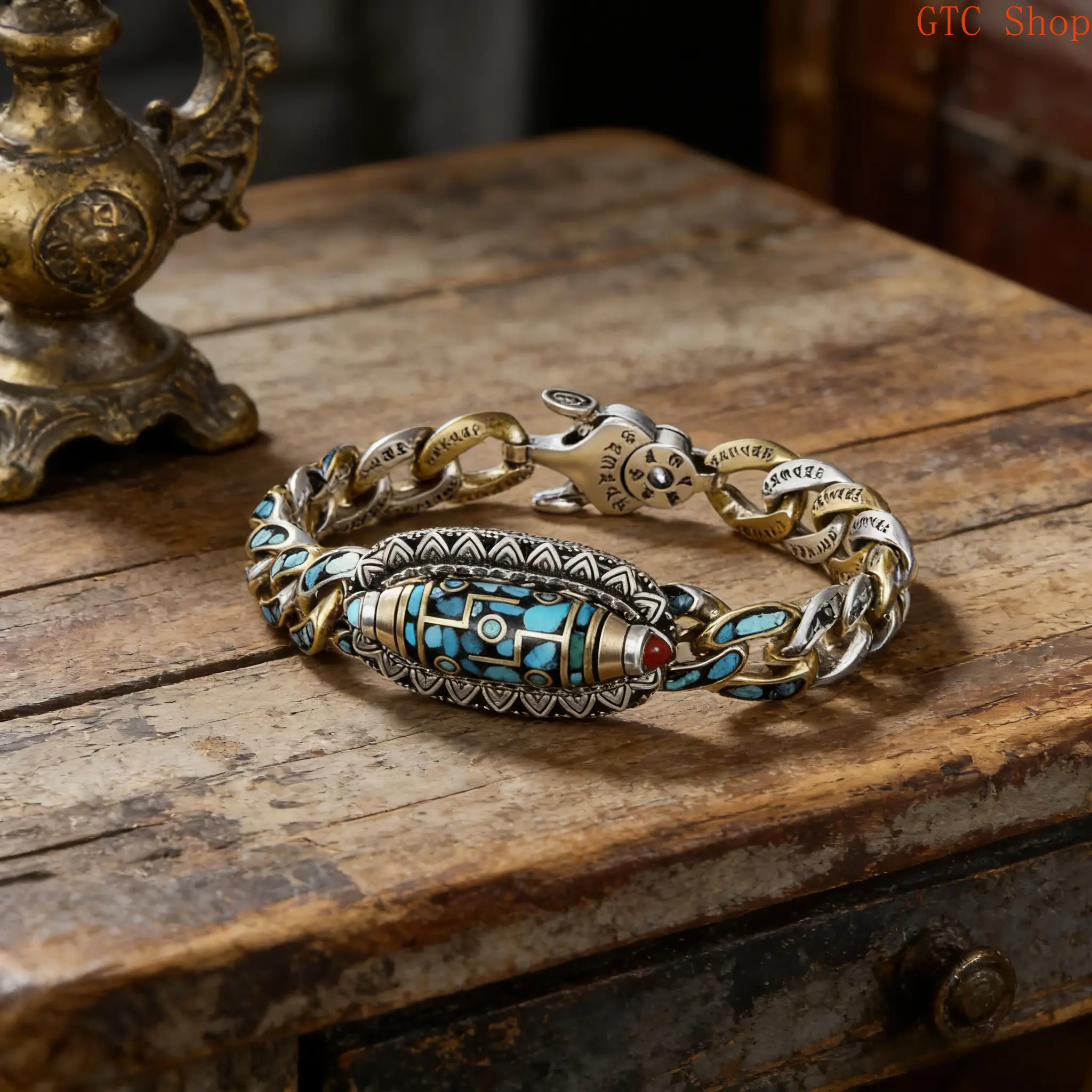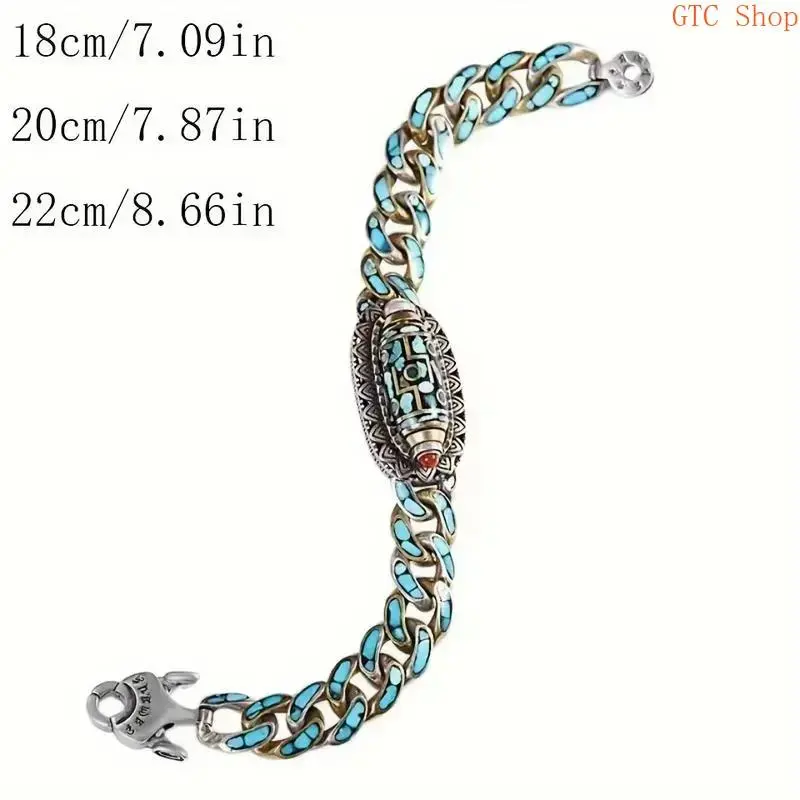 Tibetan Style Six-Syllable Mantra Bracelet Design & Style: This bracelet features a Tibetan style with a six-syllable mantra. It includes nine-eyed Dzi beads and turquoise stones. Perfect for meditation and good luck. Versatility: Ideal for daily wear, this anklet can also be worn as a bracelet. It combines functionality with spiritual significance. Material & Details: The bracelet is crafted with turquoise stones and Dzi beads. The six-syllable mantra adds a spiritual touch. It is a versatile piece for meditation and daily use. Usage: Suitable for meditation, this bracelet brings good luck. It is a perfect accessory for daily wear, adding a spiritual element to your outfit.