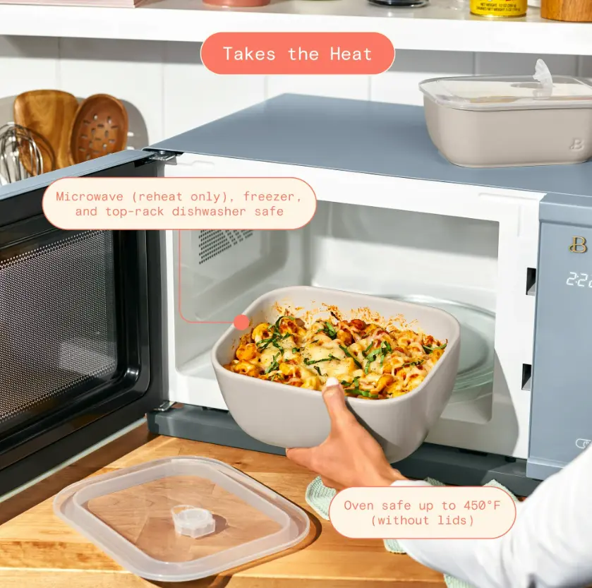 ·Microwave (reheat only), freezer, and top-rack dishwasher safe