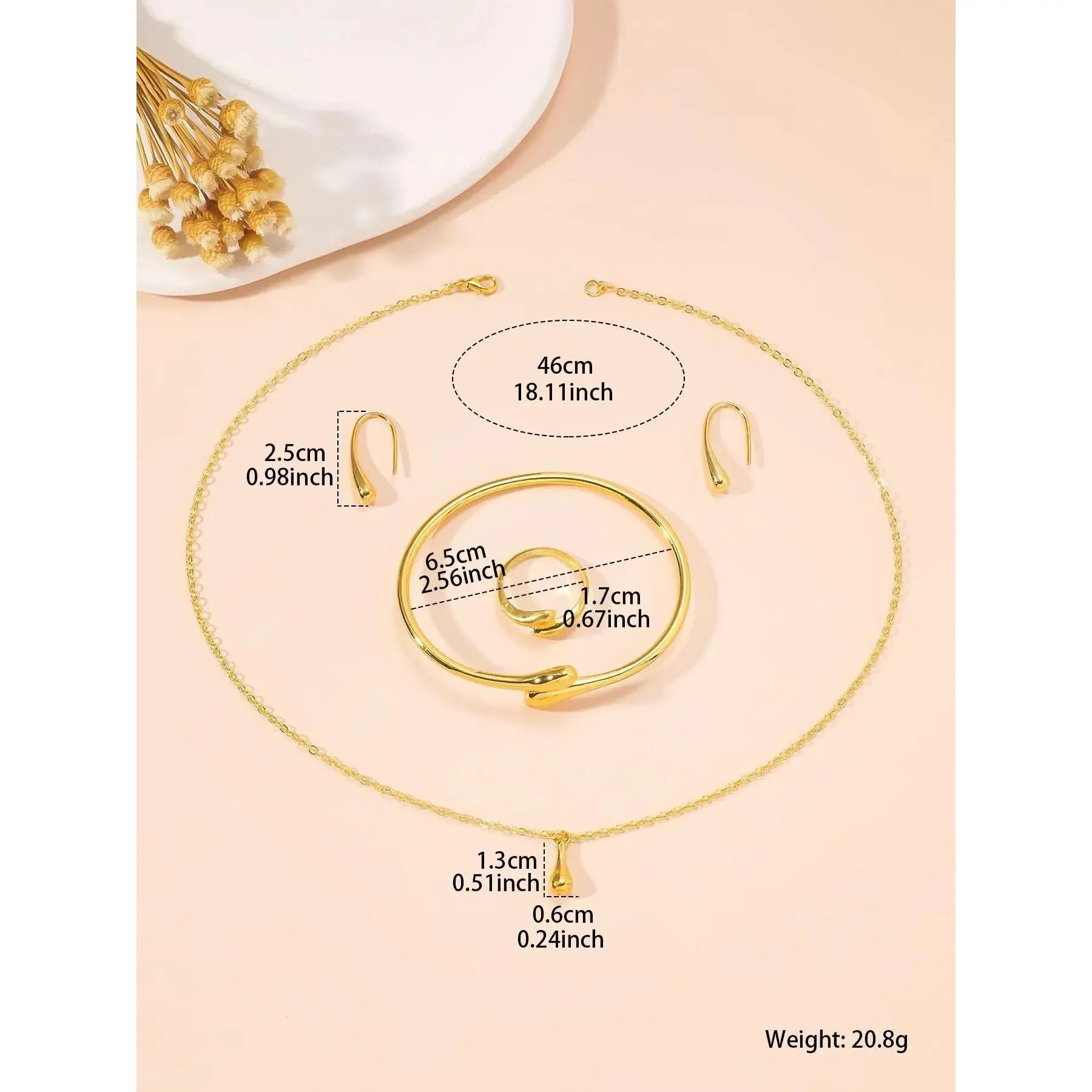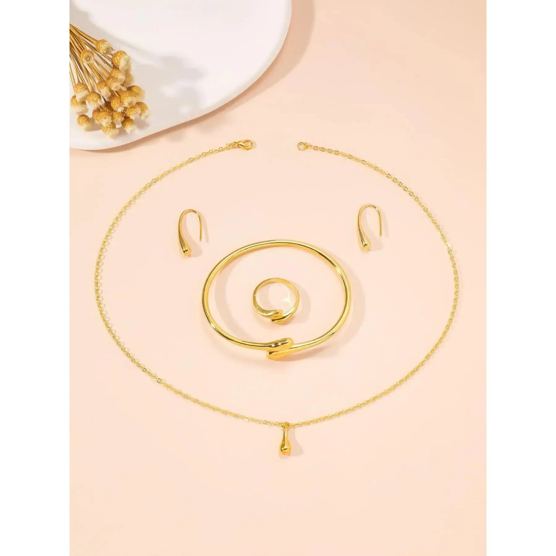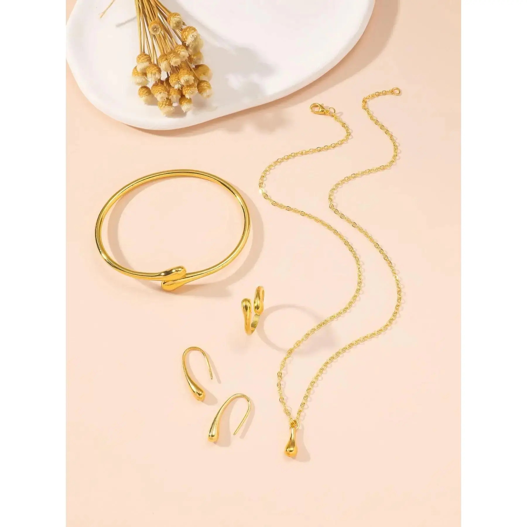 [Full Set Offer]: This comprehensive jewelry set includes a bangle, pendant necklace, ring, and earrings, perfect for complete accessorizing in one purchase.