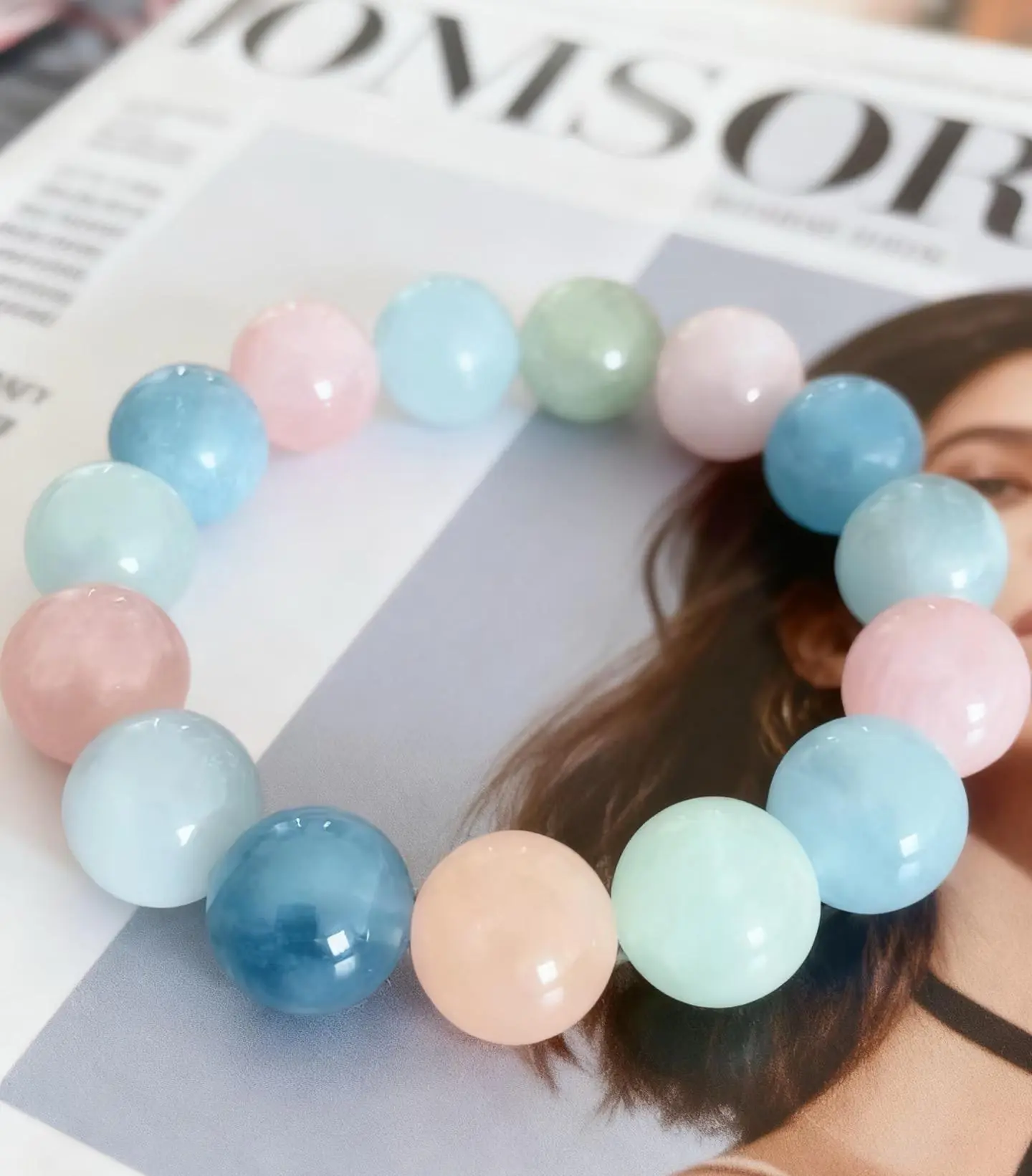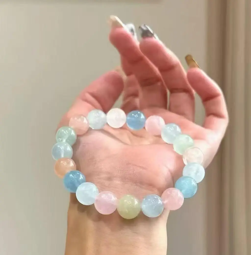 Morganite Crystal Bracelet | Candy Color Beads | Balances Mood & Relationships | Consecrated by a Taoist Priest | Chinese FengShui Mood Enhancer