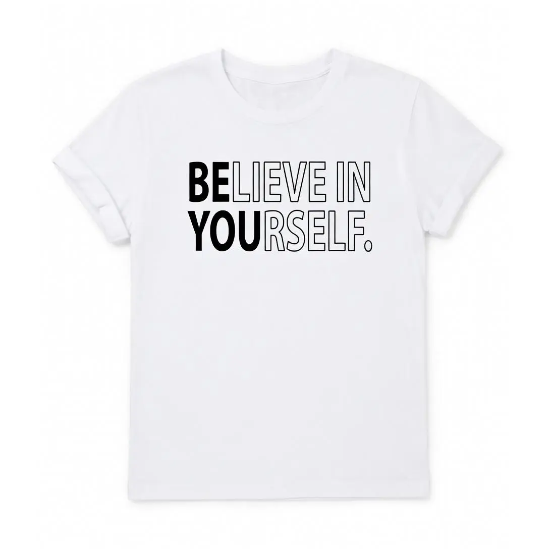 Believe In Yourself Motivational T-Shirt, Inspirational Teacher Appreciation Graphic Tee, Positive Growth Mindset Short Sleeve Apparel, Aesthetic Educator Team & Self-Love Gift Fashion Top, Viral Trendy Proud Of Yourself Statement Streetwear Crew Neck