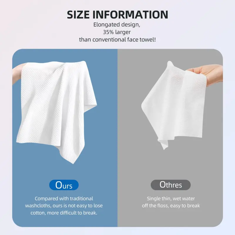 Composition -- viscose fiber provides superior toughness, delicate touch and mildness. Thickened and enlarged design with excellent water absorbency. This product does not contain any synthetic fibers, odors, bacteria, fluorescent whiteners, fragrances or. Size: 7. 9 " x 9. 4 "inchesFeatures -- This Viscose Biodegradable Large Dry Wipes is designed with a two-sided texture that is smooth on one side for gentle scrubbing of the skin, and with an Pearl Pattern on the other side that provides a greater grip for deeper cleansing of your skin. It does not produce cotton flakes and is suitable for all skin types (special note: for special skin types, please try a small area in an inconspicuous place first and stop using it immediately if discomfort occurs). Wide Use -- This Daily Facial Tissues l is suitable for all kinds of people and occasions. Whether it's for full body cleaning, special facial cleansing, or even daily needs such as runny nose, removing makeup, cleaning makeup tools, it can meet your needs. Not only can it be used in all corners of your home, such as the kitchen, bathroom or living room, but it's also to take with you when you're out and about, such as traveling, camping, or after the gym. It can also be used with make-up remover and makeup remover. In short, it is a comprehensive and portable cleaning solution. Disposable Washcloths -- Compared to regular towels, old towels that have been used many times are more likely to turn into a breeding ground for bacteria, leading to allergies and inflammation on delicate skin. In addition, old towels often have dead skin cells attached to them, which may encourage the spread of germs. In contrast, disposable washcloths help reduce the risk of harmful substances growing. Customers Service -- We stand behind our Disposable Face Towels and provide excellent customer service to ensure you are satisfied with the results. Whether you are an old or new customer, if the product does not meet your expectations, please let us know and we will do our to solve the problem.