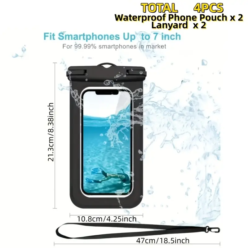 4-Piece Set [2 Waterproof Phone Pouches with 2 Lanyards] – Universal Waterproof Phone Pouch – Waterproof Phone Case Compatible with iPhone 17, 16, 15, 14, 13, 12, 11 Pro Max, XS, Plus, and Galaxy Phones Up to 7.0 Inches – Waterproof Phone Dry Bag