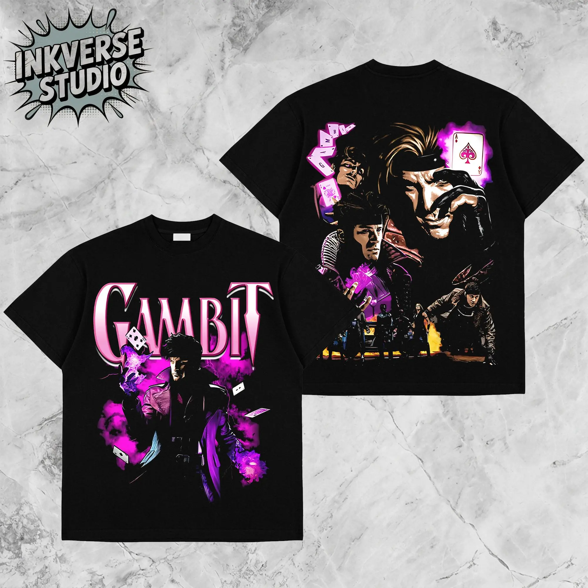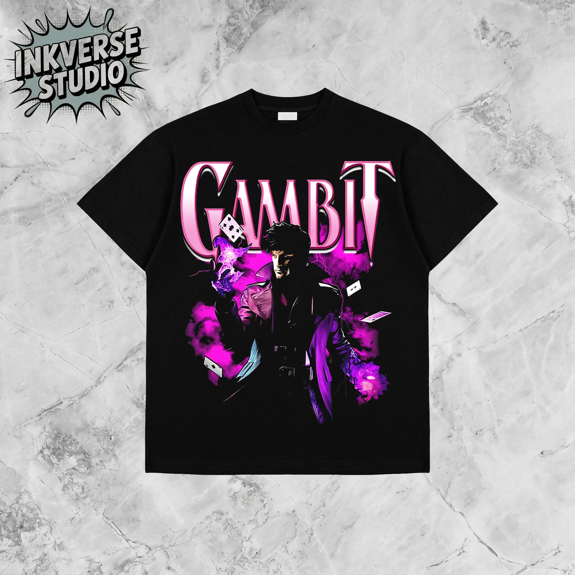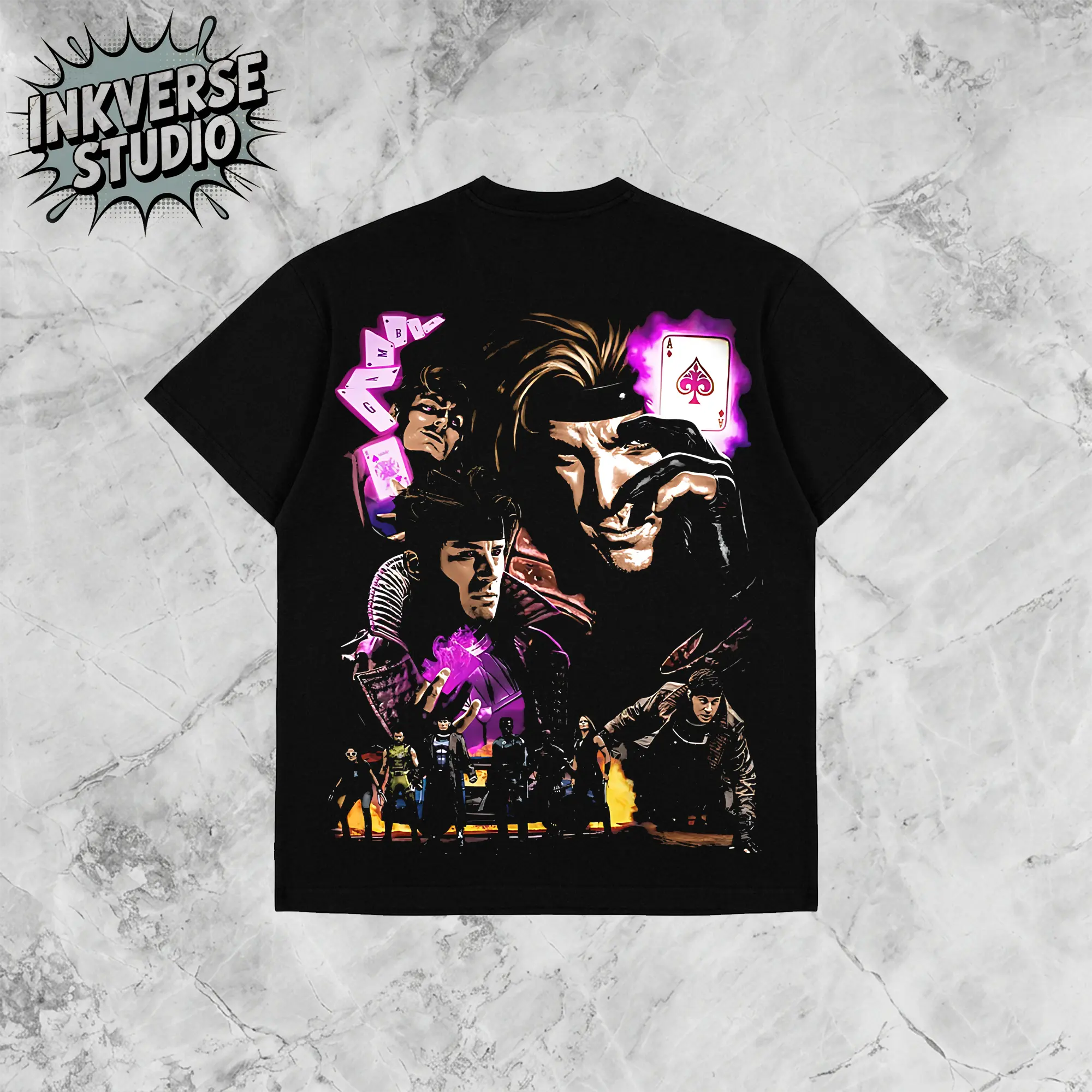 5. InkVerse Limited Edition Gambit XMen Comic Graphic Tee, Mutant Playing Cards Power Design T Shirt, Kinetic Energy Explosion Art, Oversized Streetwear Unisex Tee, Vintage Superhuro Style, Gift for X-Men Fans