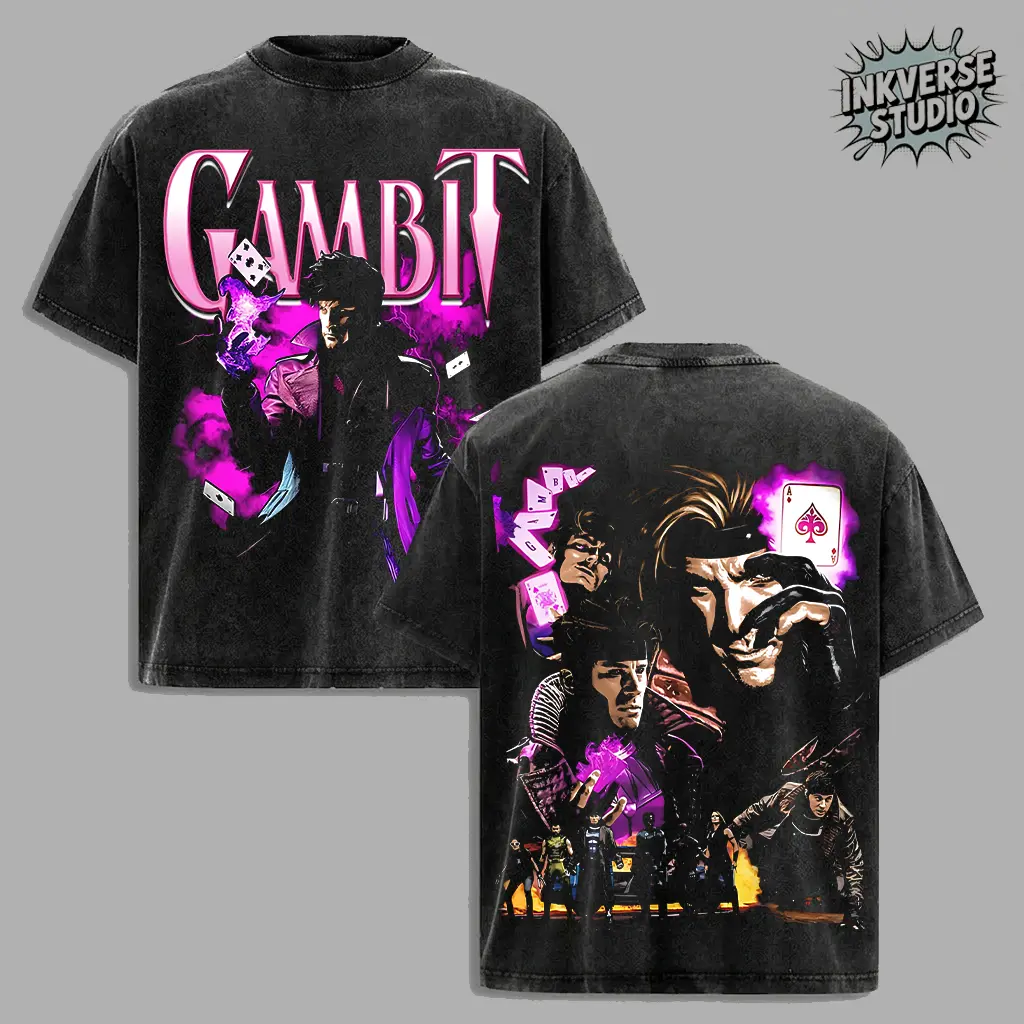 InkVerse Limited Edition Gambit XMen Comic Graphic Tee, Mutant Playing Cards Power Design T Shirt, Kinetic Energy Explosion Art, Oversized Streetwear Unisex Tee, Vintage Superhuro Style, Gift for X-Men Fans