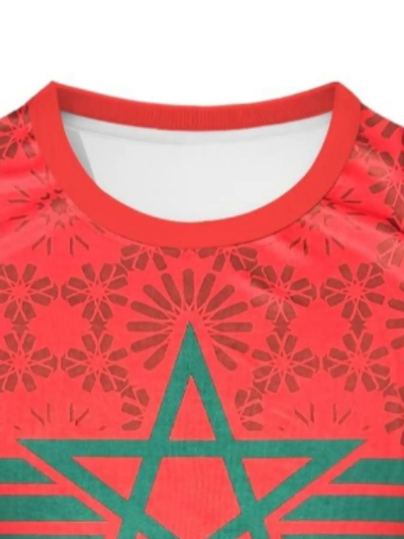 Men's Moroccan Soccer Jersey, Round Neck, Breathable Polyester Sport T-Shirt, Geometric Pattern, Slim Fit, Ideal for Casual and Outdoor Activities