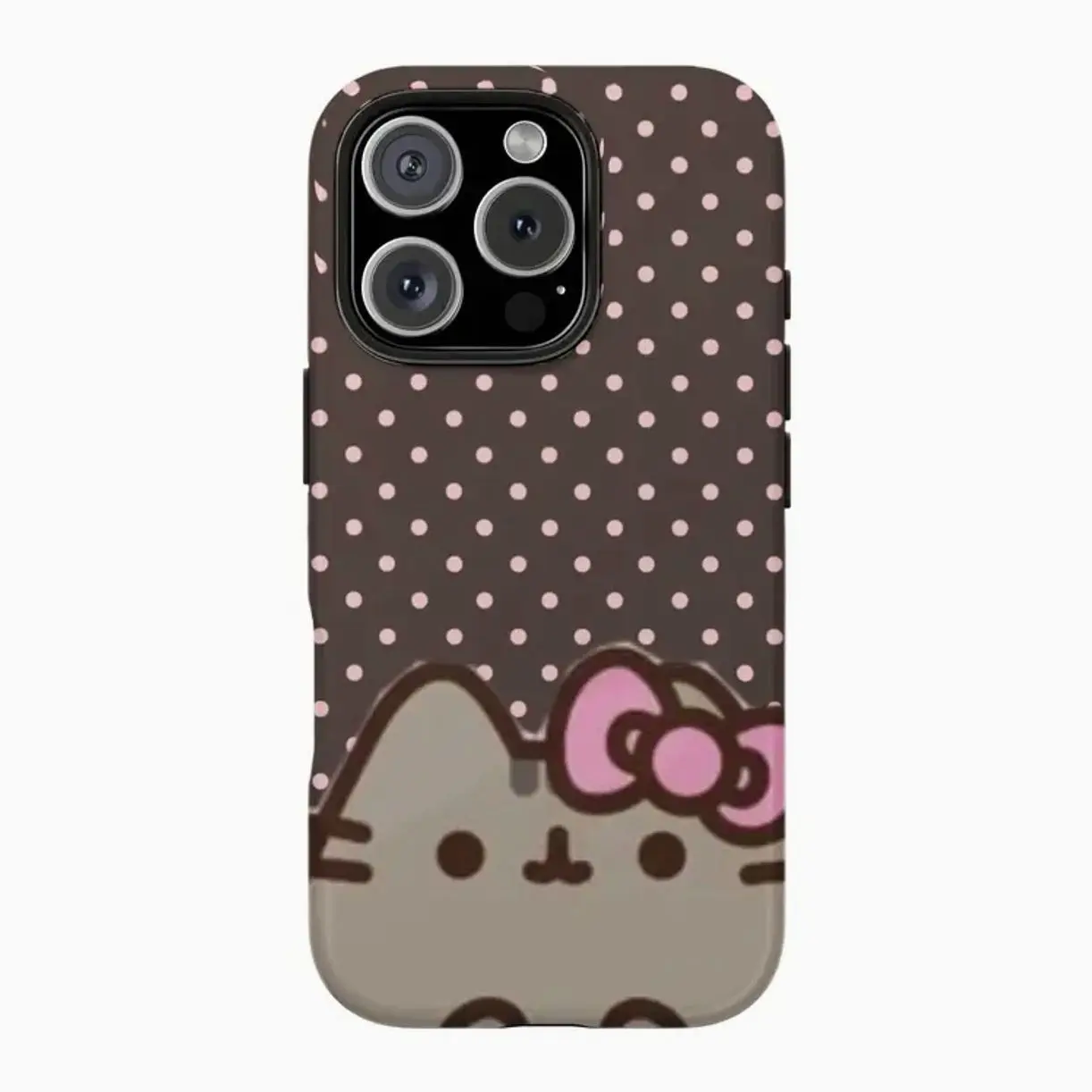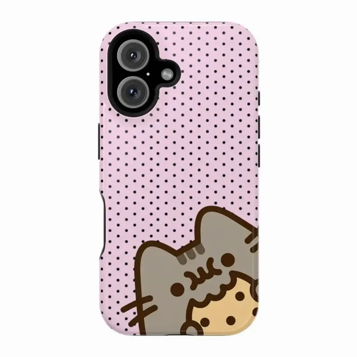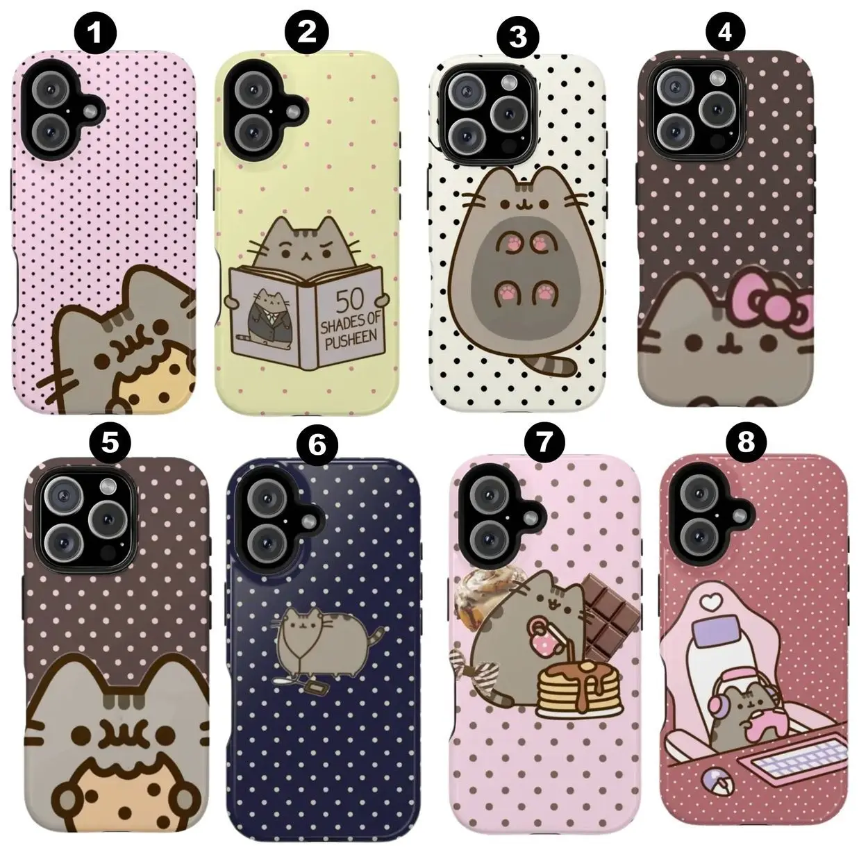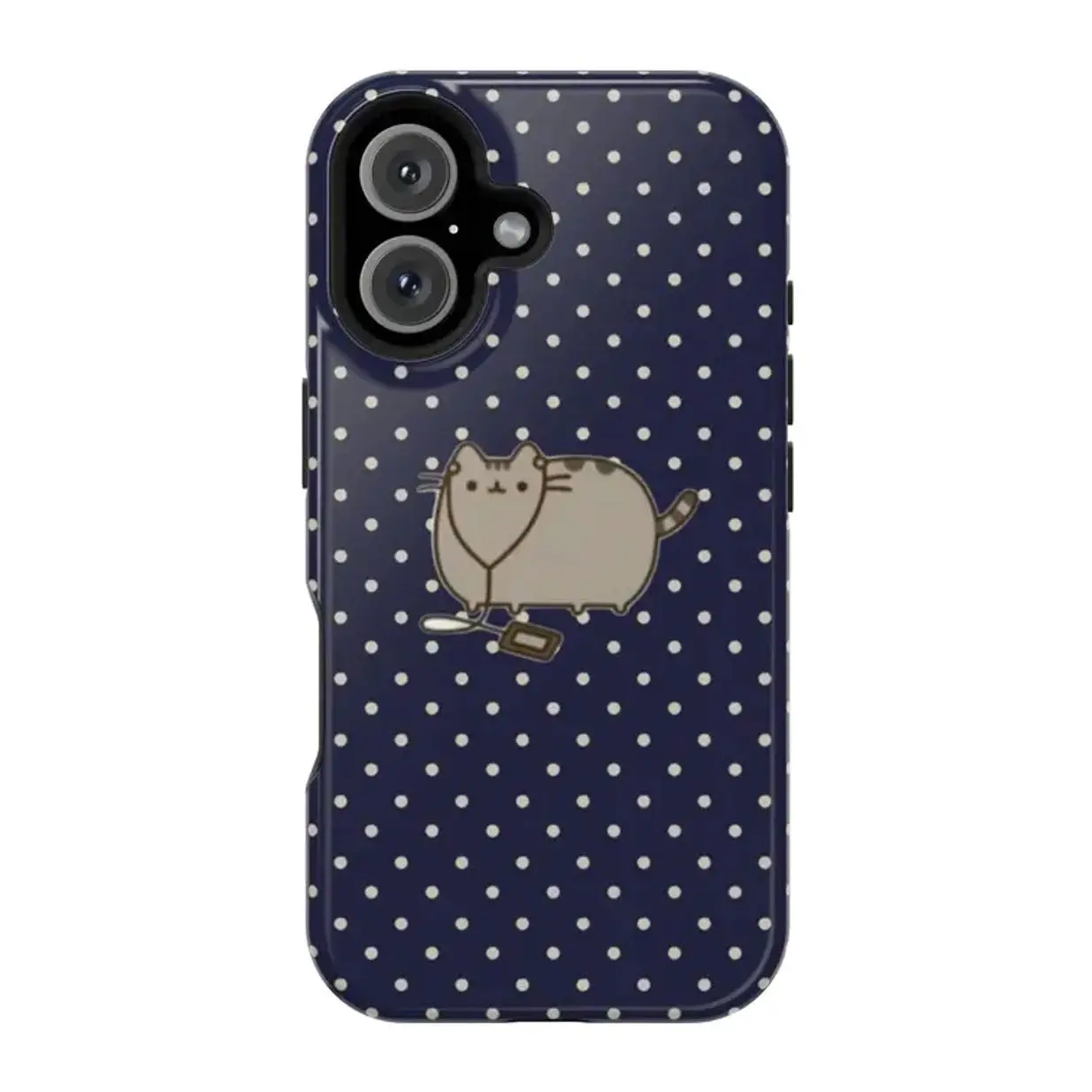 Pusheen The Cat Phone Case, Polka Dot Cover for iPhone X, 11, 12, 13, 14, 15 & more – SS Galaxy S21 to S25 Ultra, Plus with Suction