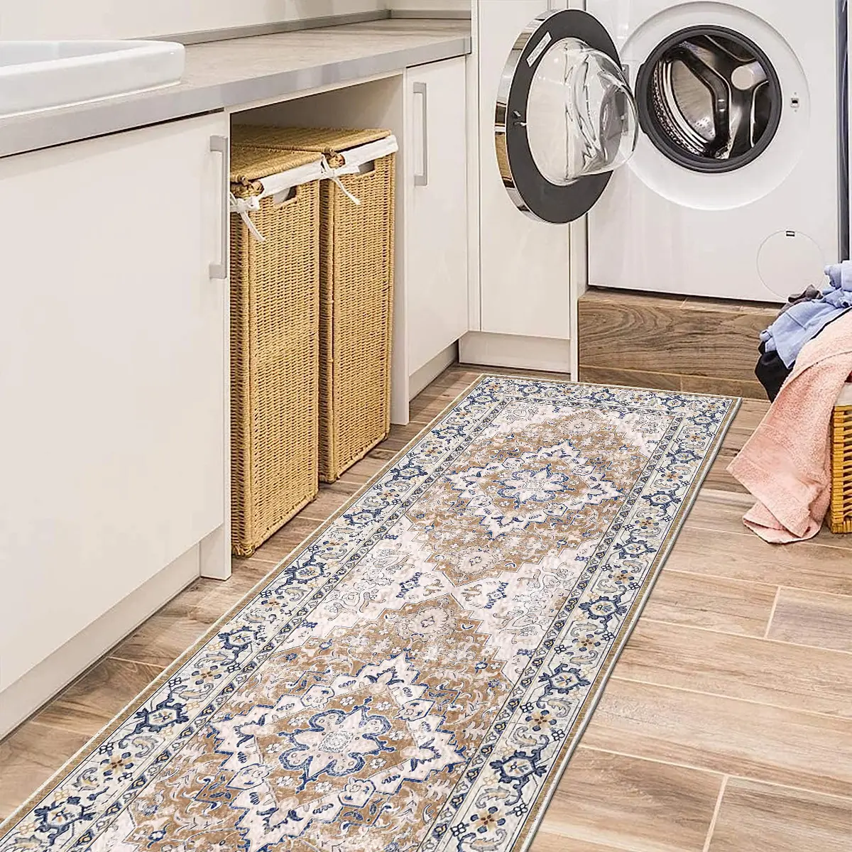 2'x6' Washable Boho Runner Rug, Non Slip Vintage Bohemian Indoor Carpet for Bedroom, Kitchen, Living Room, Hallway