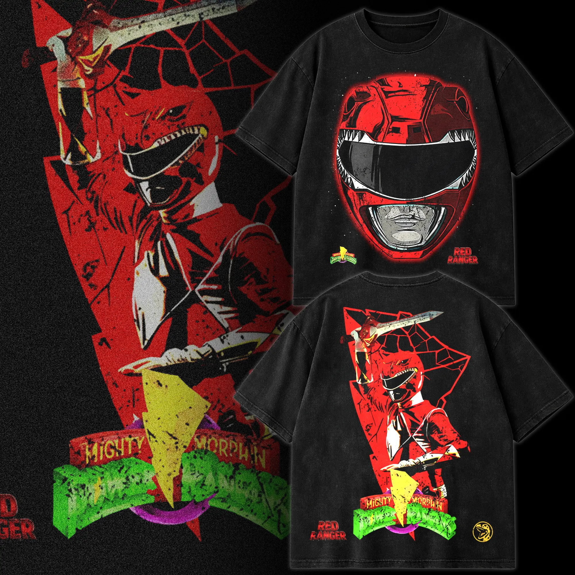 Perfect for collectors of retro TV merchandise, superhero enthusiasts, and streetwear lovers, this design blends classic ranger aesthetics with modern casual style. Available in multiple finishes including vintage washed, acid washed, and standard prints, each option delivers a unique worn-in look inspired by classic Power Rangers visuals.