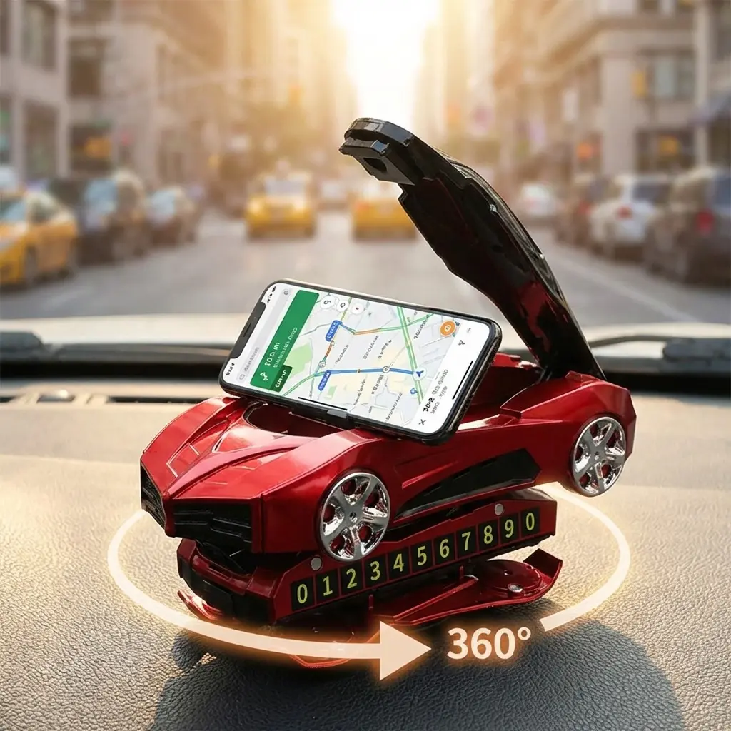 Versatile Design ---- Unique car model-shaped phone holder that doubles as a stylish center console ornament, providing both practicality and aesthetics. Ideal for those seeking a multifunctional accessory.