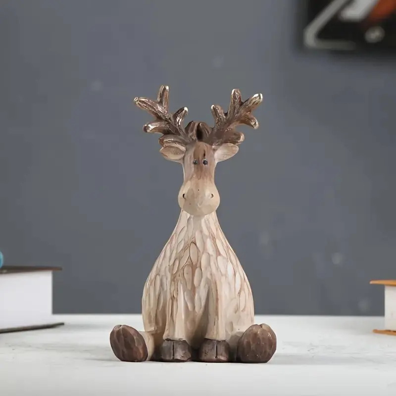 Resin Reindeer Ornament with Bristles, Cartoon Style Christmas Decor, Detailed Craftsmanship, Perfect for Home & Gifts, Ornaments Decor