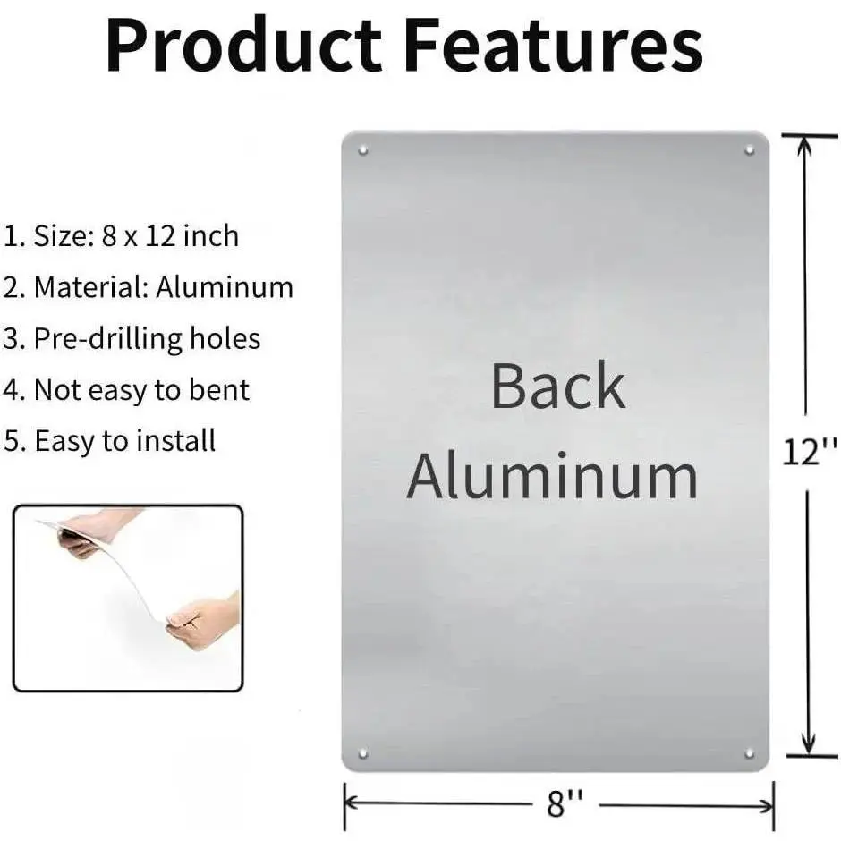 Size: 12 x 8 Inch,perfect for any area, whether it is hung or pasted on the wall or door, the fit is very good Materials and workmanship: Engineer grade metal, aluminum. Printed with high-quality eco-friendly ink, it is not easy to print fade, and the color is beautiful and shiny. Rounded Corners: Each corner has pre drilled holes for easy hanging on any wall space, garden, garage, or door.Multiple display ways such as using ropes, chains, hooks, nails, or double-sided stickers for pasting Widely Applicable:Great for for decorating your home, garage,garden,shop,office, hunting lodge, cabin, rec room, bar or man cave with and make great gifts If you have any questions, please feel free to contact us, we will solve the problem within 24 hours. We are committed to providing customers with quality products and the best service to ensure your satisfaction!