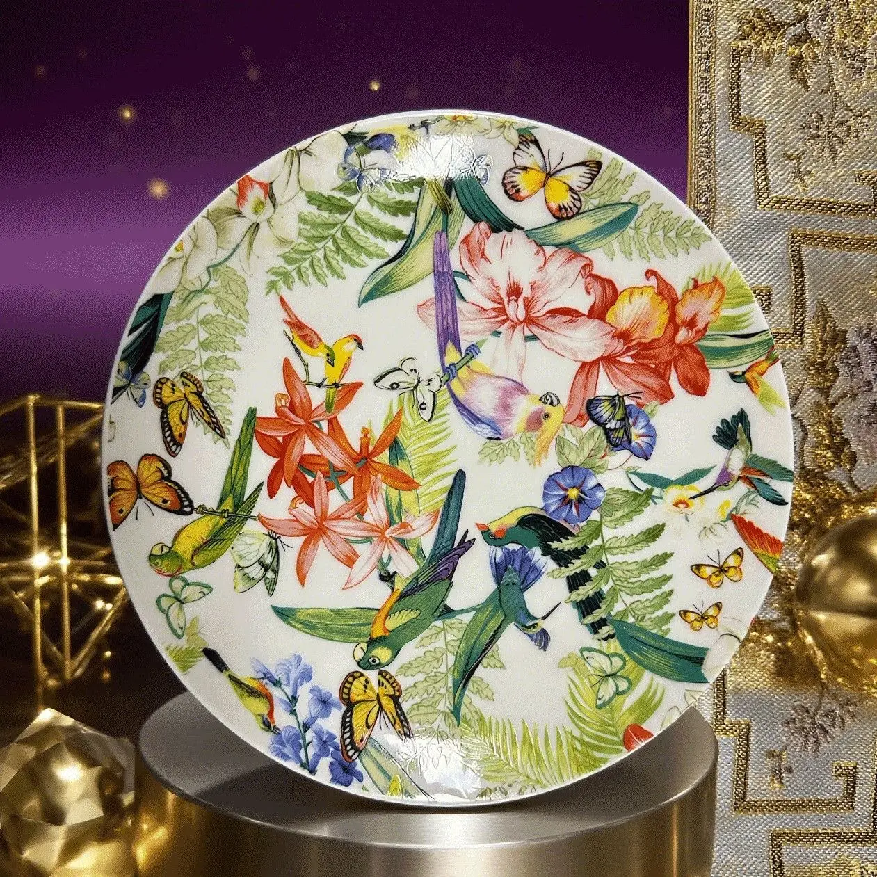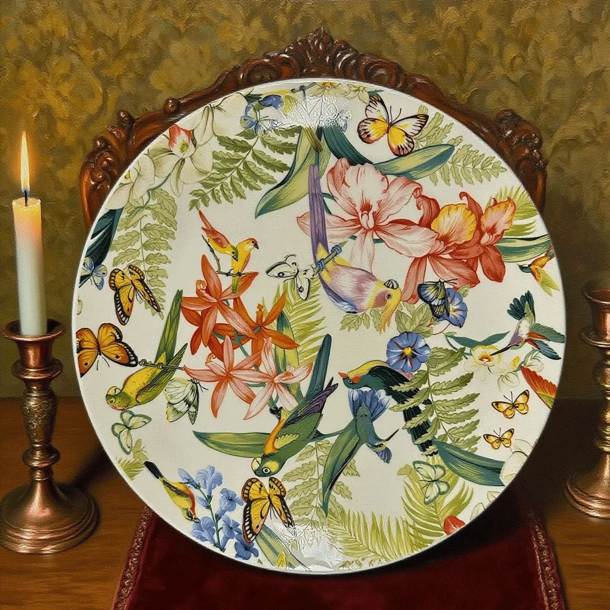 This elegant 8-inch bone china plate features beautiful American floral and bird designs, perfect for daily meals, parties, and Western food service. Smooth, lightweight, and stylish, it effortlessly enhances your dining experience.
