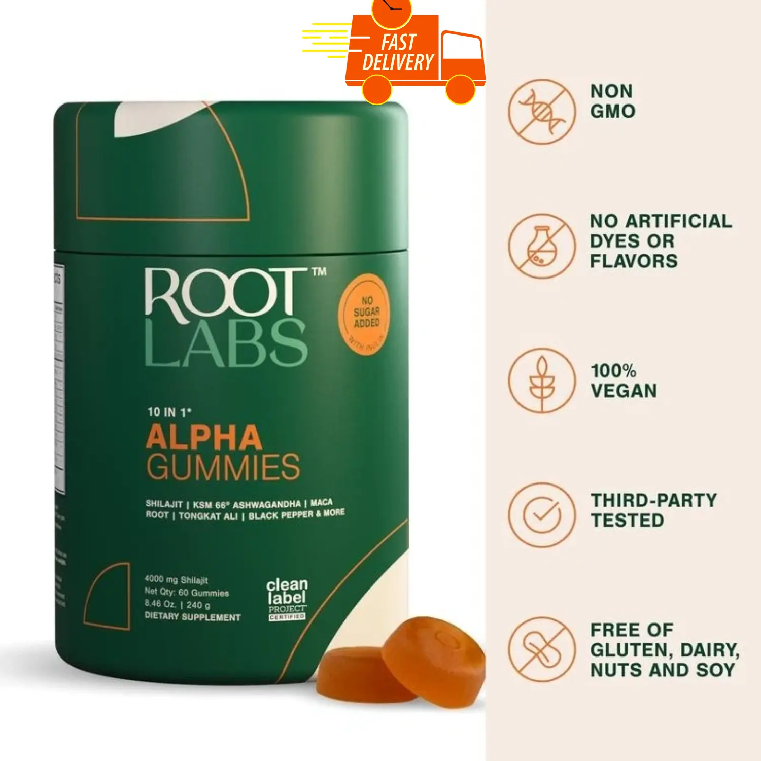 Root Labs 10-1 Alpha Gummies | 4000 mg Pure Shilajit with KSM-66 | 60 Gummies