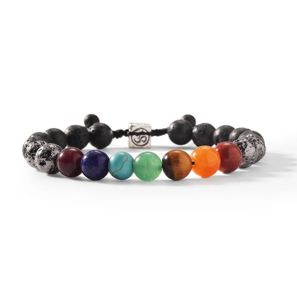 Crafted with 7 authentic chakra stones (Amethyst, Lapis Lazuli, Turquoise, Green Aventurine, Tiger's Eye, Carnelian, Red Agate), this bracelet is designed to align your 7 energy centers, promote meditation, yoga practice, and bring balance, peace and good luck to your life.