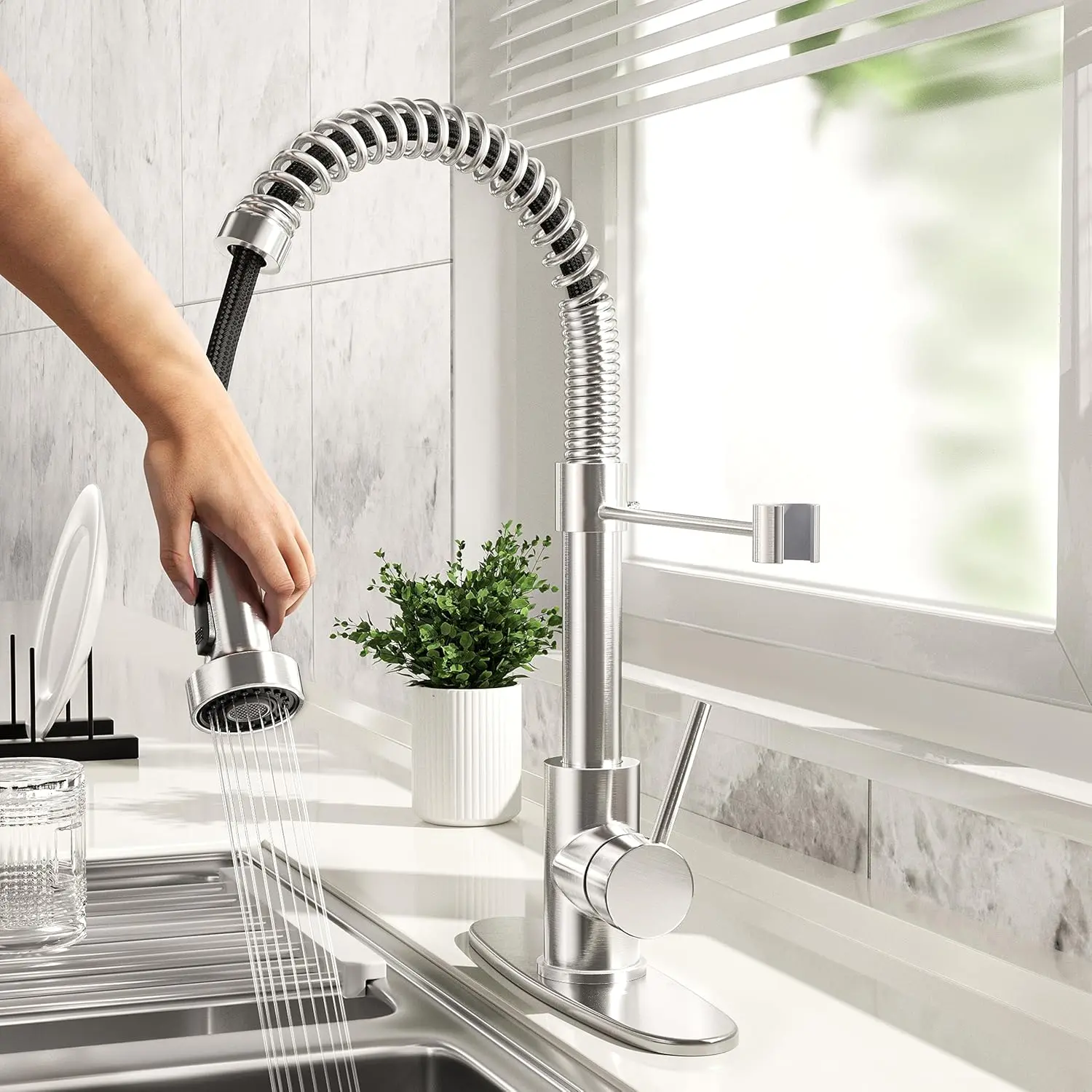 ·MATERIAL: Premium 304 stainless steel construction this kitchen faucet, lead-free and corrosion-resistant for lasting durability. Features a precision-engineered ceramic valve core to prevent leaks and ensure smooth operation. All materials meet strict safety standards for your family's health.