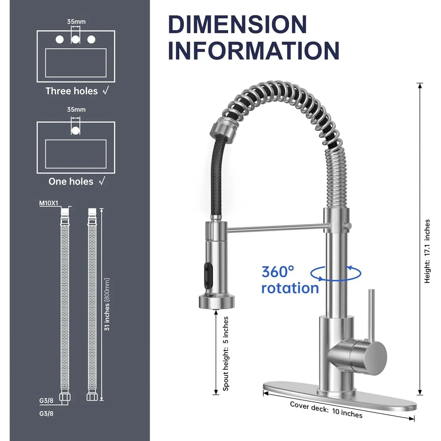 ·SIZE:faucet for kitchen sink Perfectly proportioned for versatile use - 17" total height clears large pots, 10" deck plate fits single or 3-hole installations.