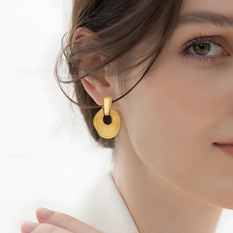 European and American jewelry: Exaggerated geometric irregular disc large earrings, French retro textured earrings, niche style