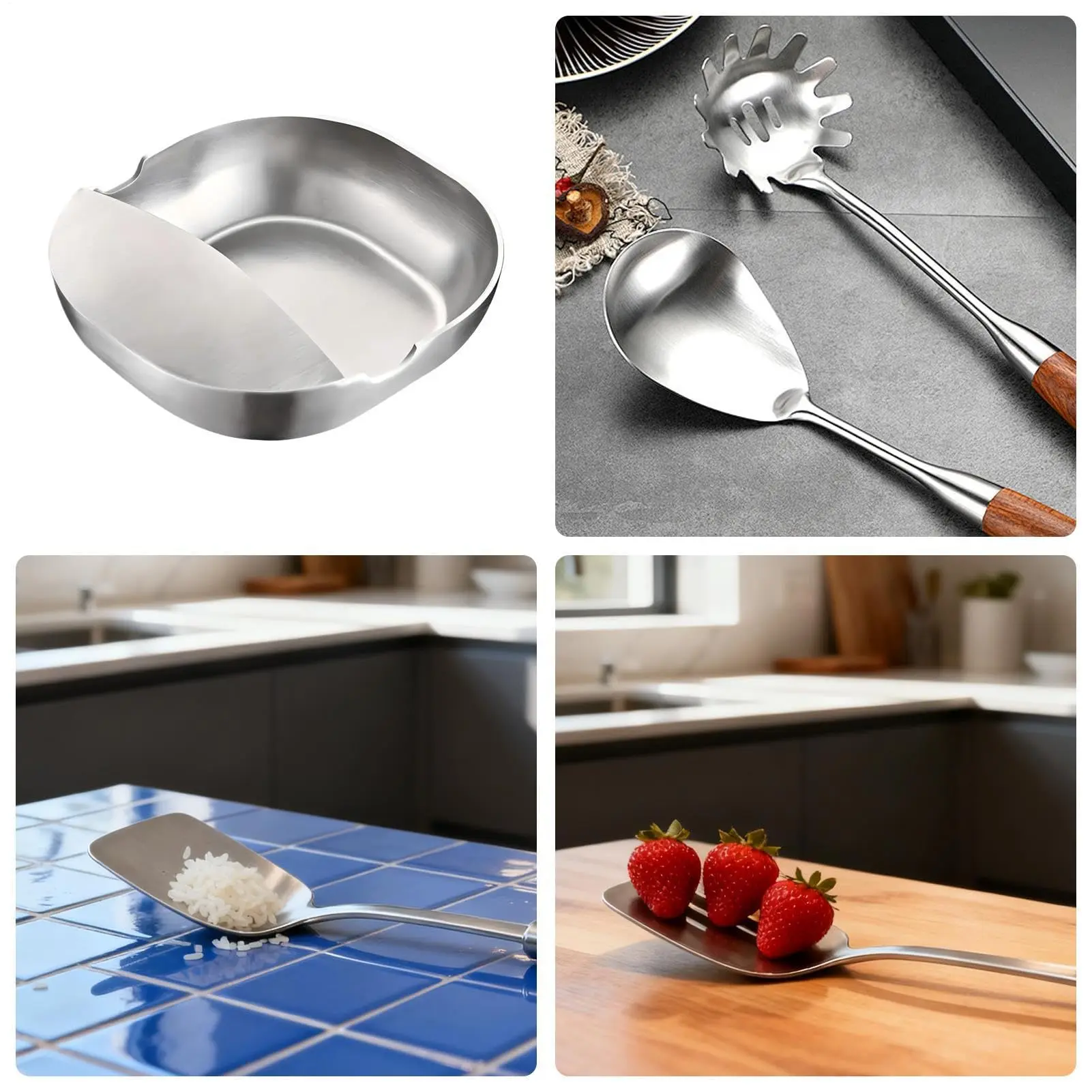 5. 3 PCS Stainless Steel Spoon Rest & Multipurpose Kitchen Utensil Holder, Soup Ladle Tray, Tabletop Organizer for Cooking, Serving Snacks, Fruits, Sauce, Soup, Home