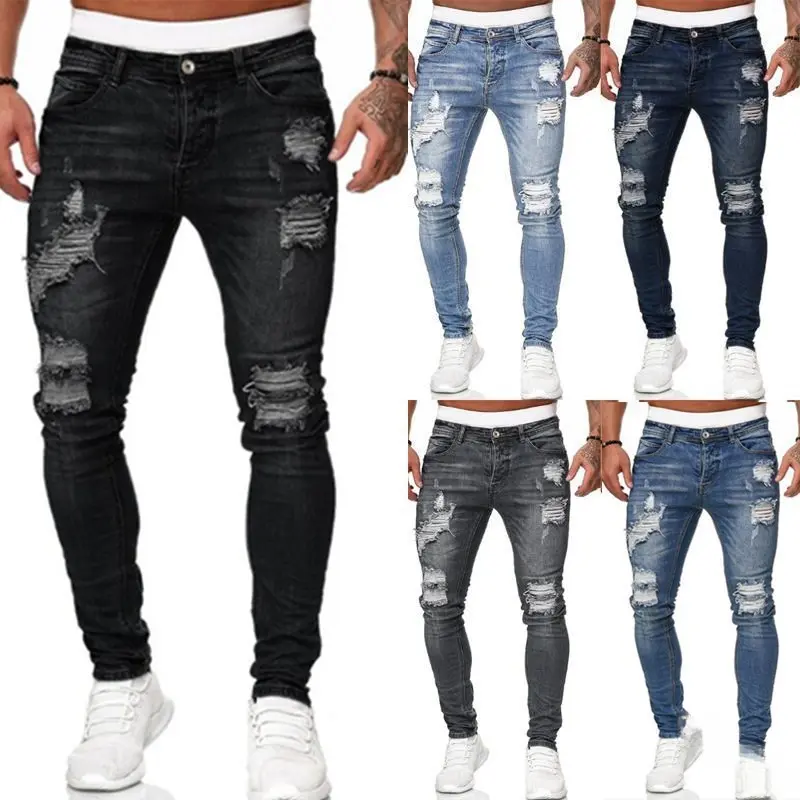 Men’S Casual Slim-Fit Denim For Streetwear Fans Suitable For Daily Wear And City Use Medium Elasticity Medium Weight Soft And Comfortable With A Distressed Look Men’S Solid-Color Multicolor High Street Low Rise jeans