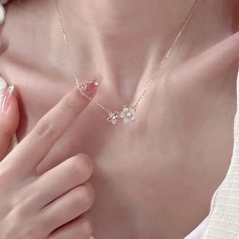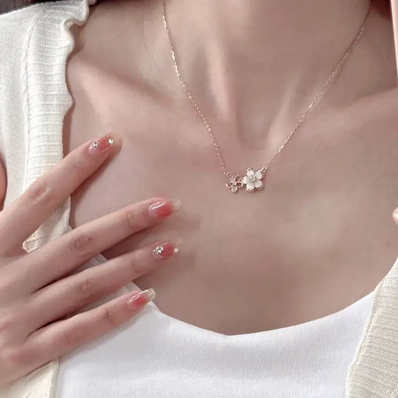 Cherry Blossom Pendant Necklace for Women, Dainty Flower Clavicle Chain 2026 Trendy Jewelry