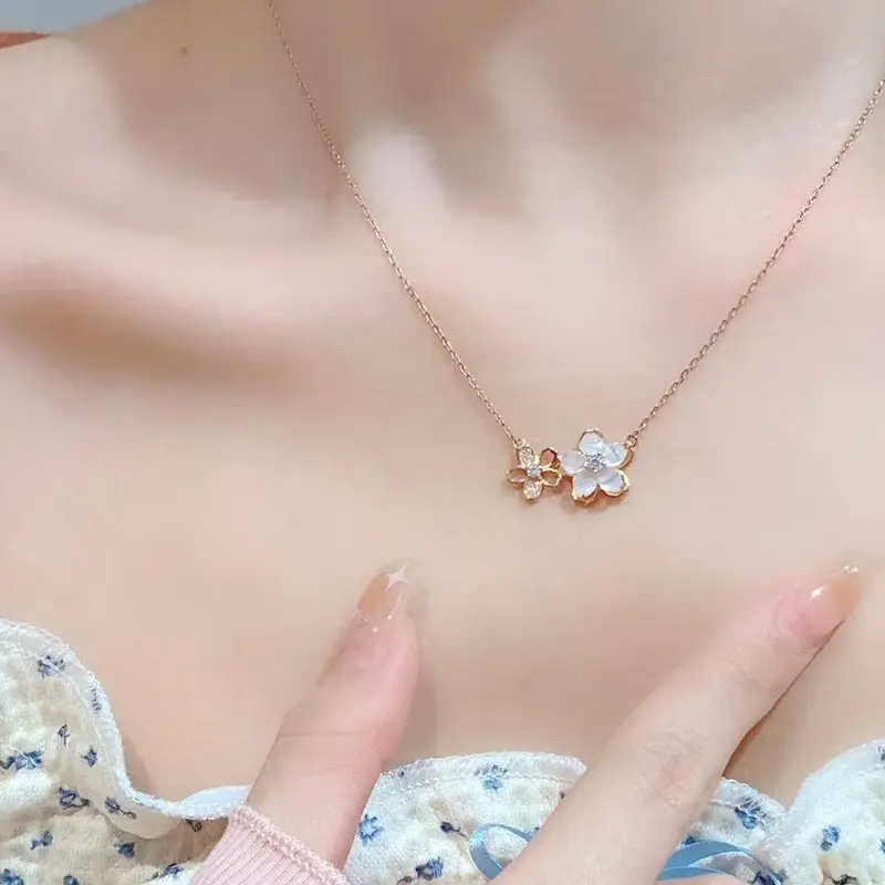 Embrace timeless femininity with this enchanting double cherry blossom pendant necklace-a 2026 must-have for anyone who loves delicate, nature-inspired luxury.Expertly crafted with a warm rose gold-plated finish, this necklace features two intricately designed sakura (cherry blossom) charms, blending ethereal beauty with modern sparkle for a look that’s equal parts romantic and chic.