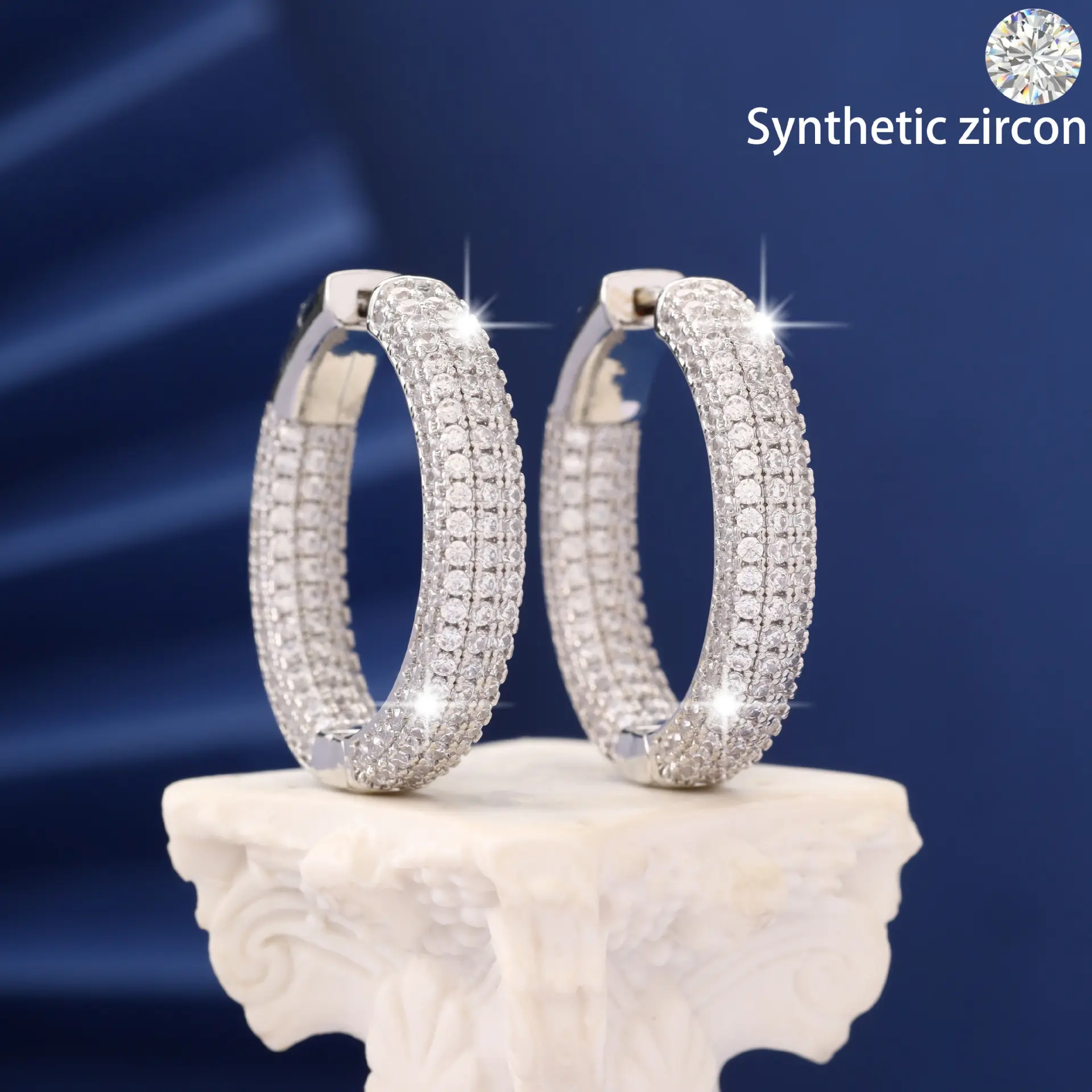 Cross-border best-selling full zircon earrings, light luxury, high-end, stylish and trendy, unisex, European and American hip-hop personality