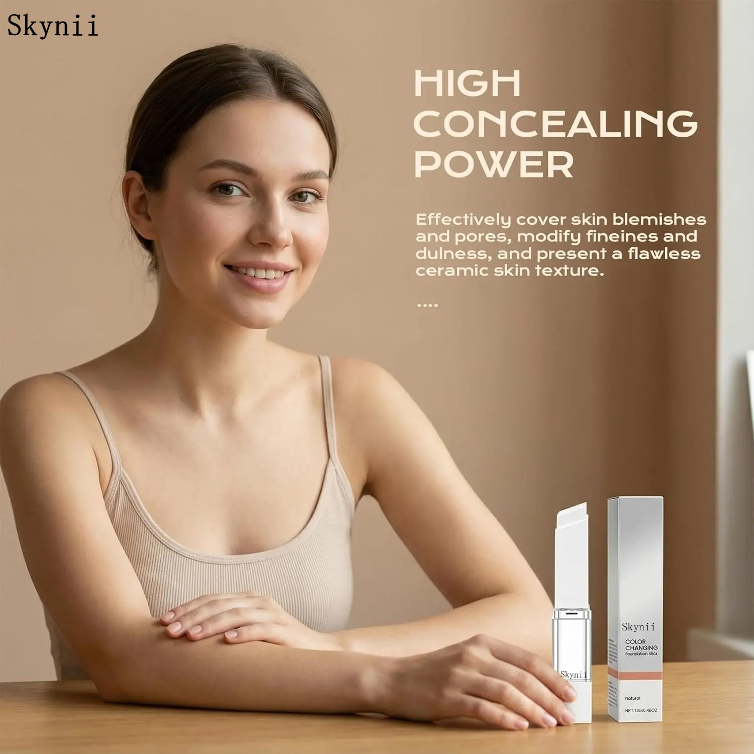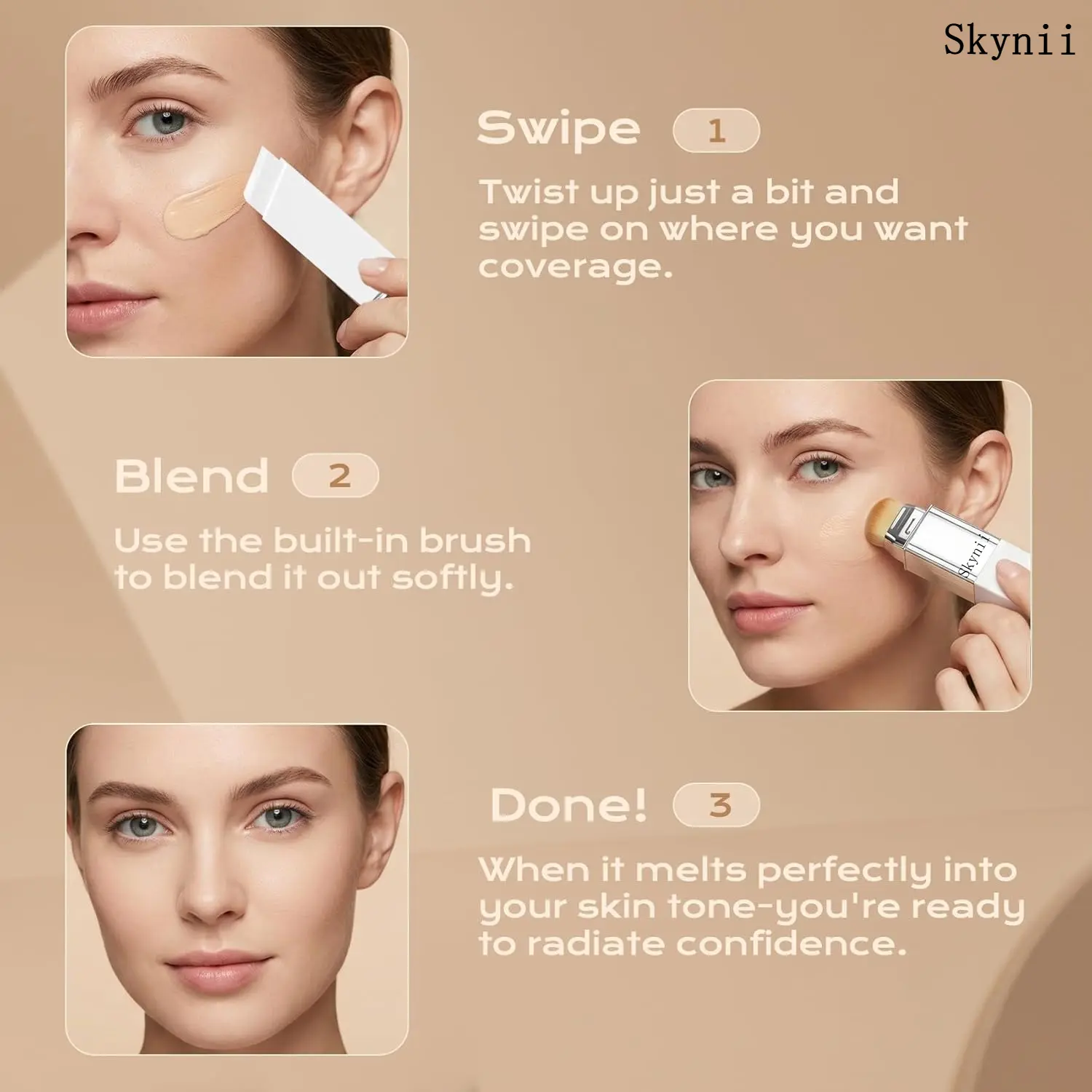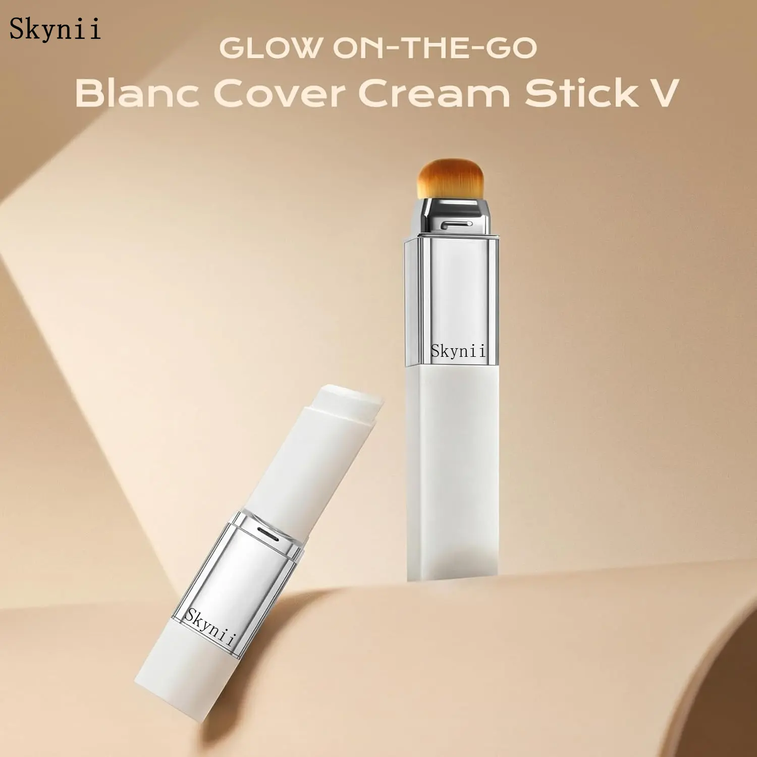 Skynii Blanc Cover Cream Stick V - Color Changing Foundation Stick with Volufiline - Hydrating Concealer Base Makeup, Dual-Ended with Built-in Brush, Portable for Daily Use (Natural)