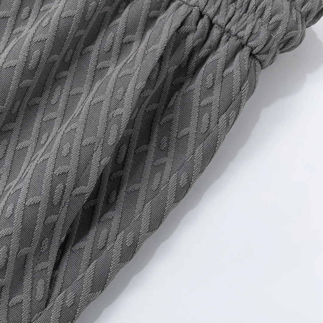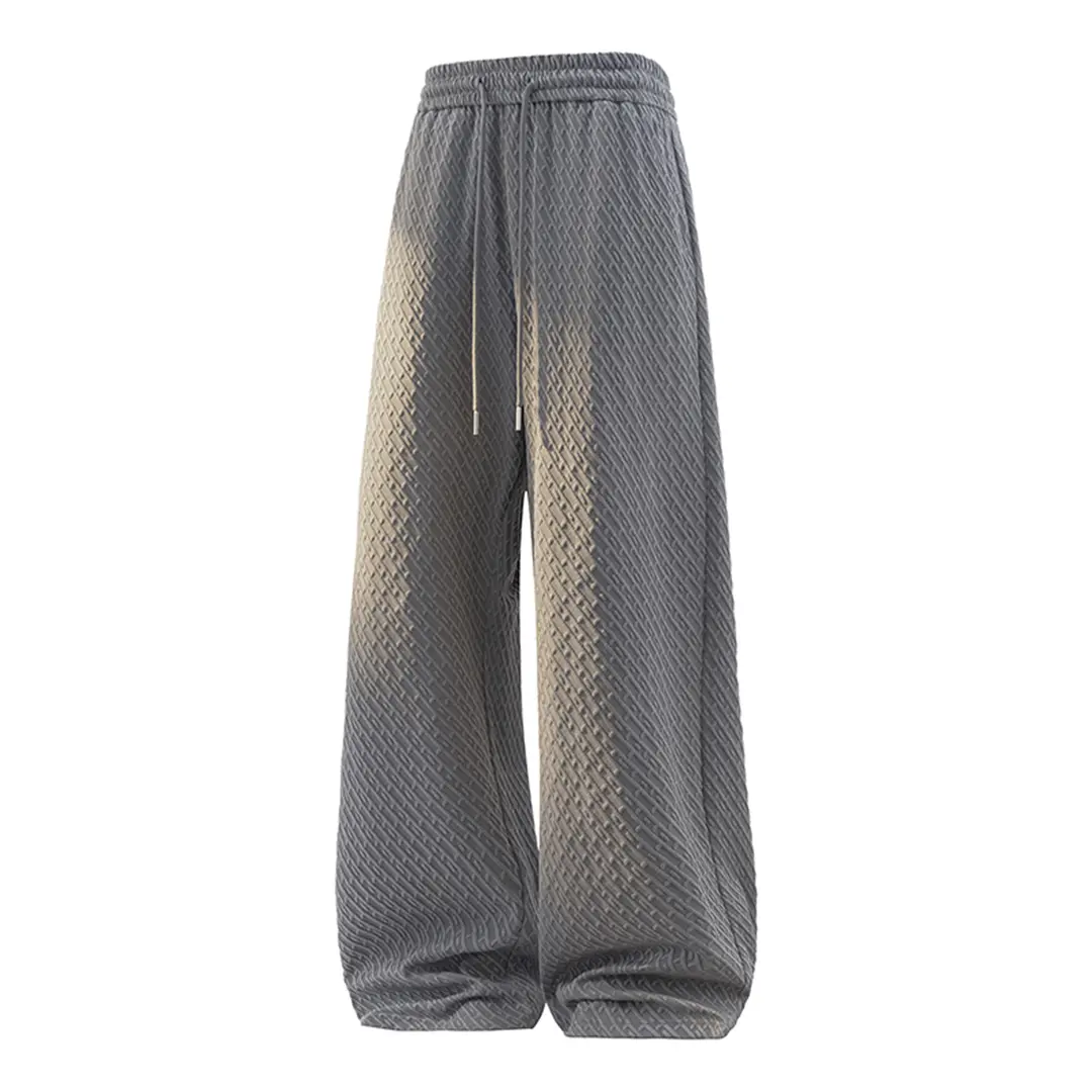 Plus-size men's straight-leg twill jacquard casual trousers, street style loose wide-leg athletic pants
