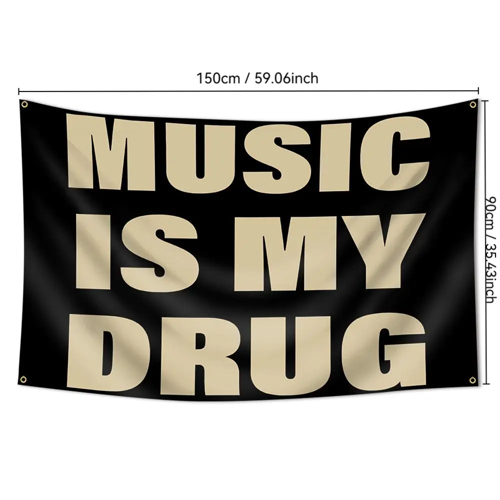 Music Is My Drug Flag, 3x5 Feet Outdoor Wall Banner, Dorm Room Decor, Home Decoration Durable Decorative Tapestry, Indoor Use, Suitable for Bedroom, Study Room