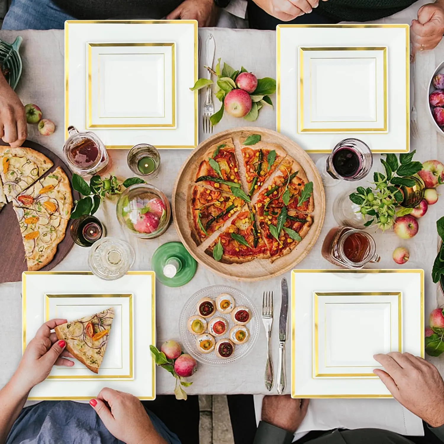 Let the good vibes shine with sleek gold-rimmed pieces that make every meal feel special.