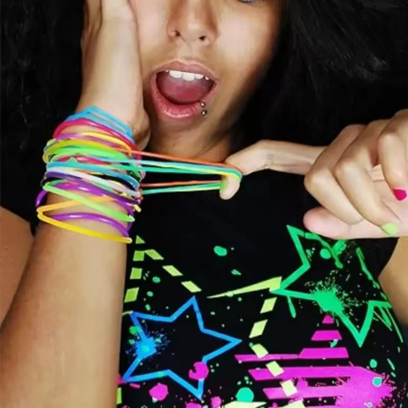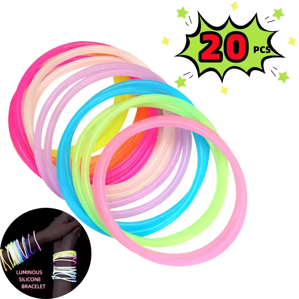 20 Pcs Glow-In-The-Dark Bohemian Silicone Bracelets, Fluorescent Elastic Wristbands, Festival Party Night Run Accessories, Random Colors