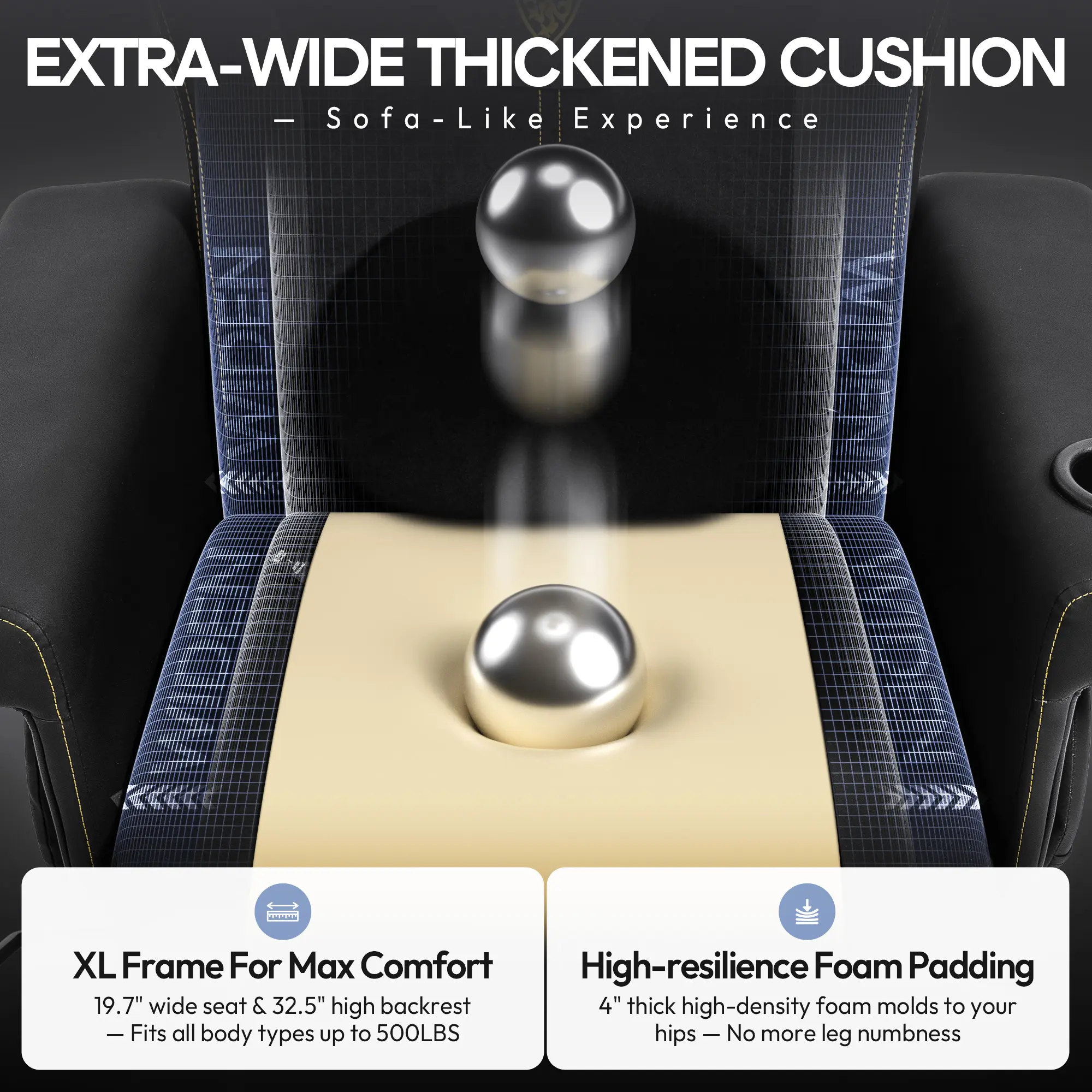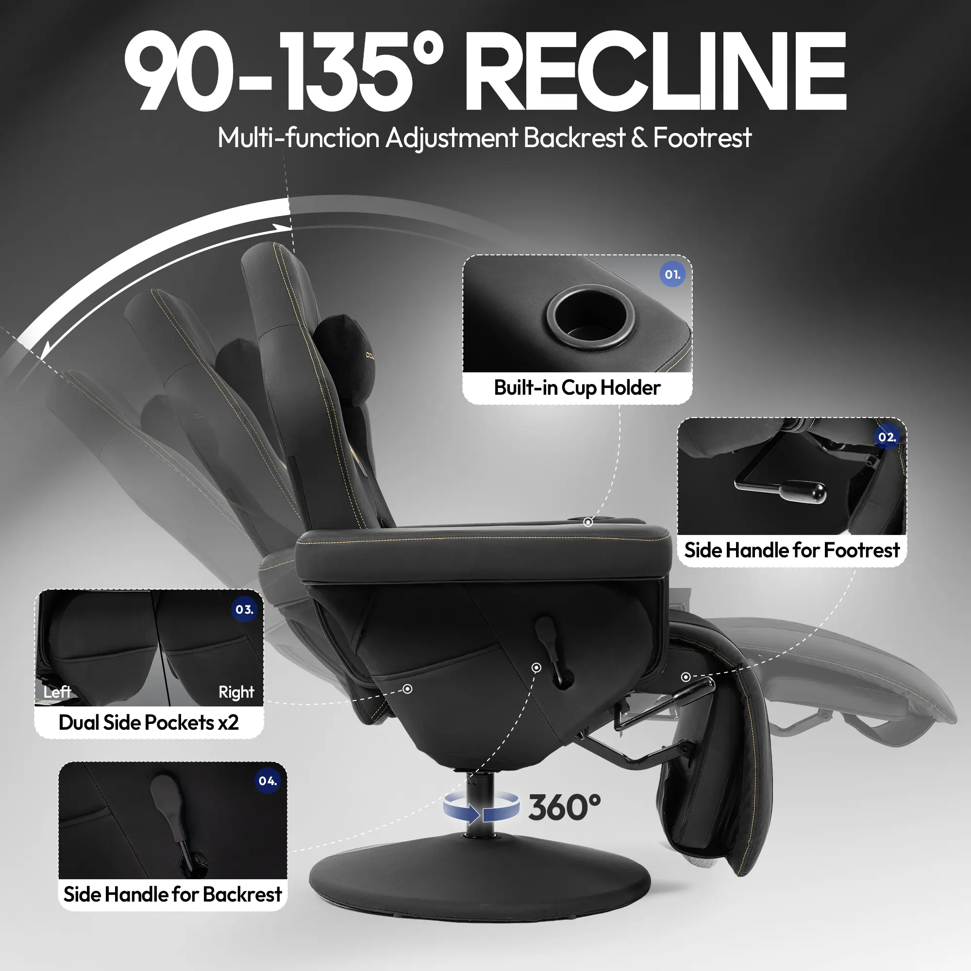 ·Reclining Freedom: The gaming chair recliner adjusts smoothly from 90° to 135°, letting you switch from intense gameplay to relaxing naps effortlessly. With a wider backrest, thickened cushion, and a larger footrest, this recliner gaming chair provides sofa-level comfort and flexibility for any occasion.