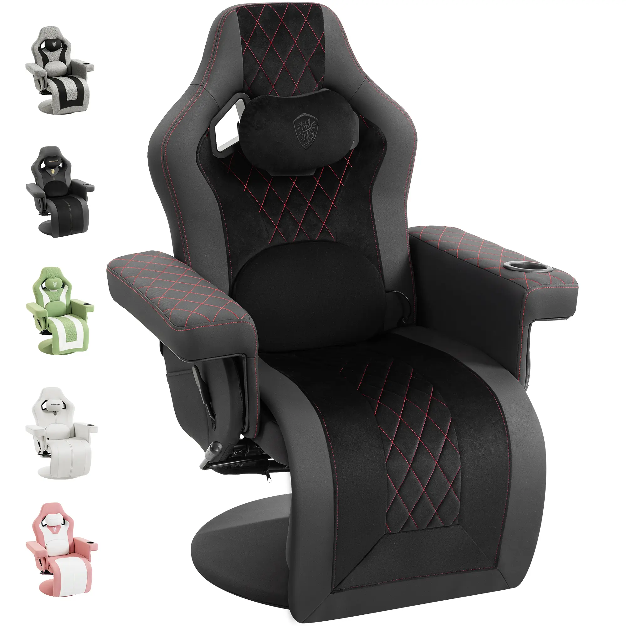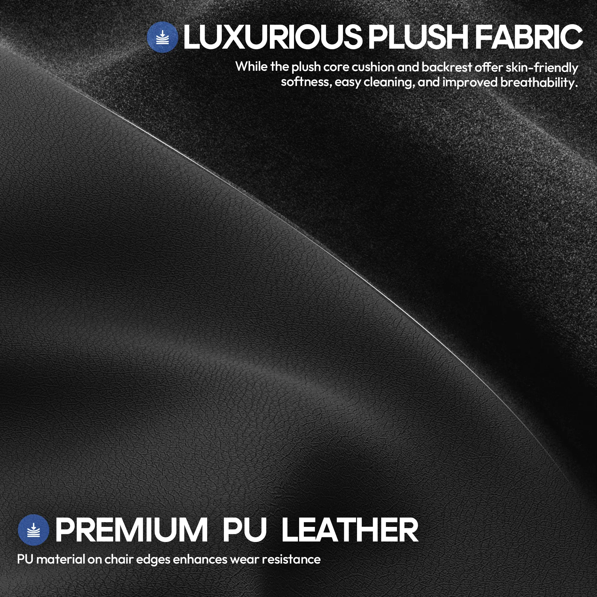 ·Refined PU-Fabric Blend with Cup Holder: This reclining gaming chair pairs PU leather and fabric for a balance of elegance, comfort, and durability. The surface stays cool yet easy to maintain, while the cup holder offers convenience for long gaming sessions.