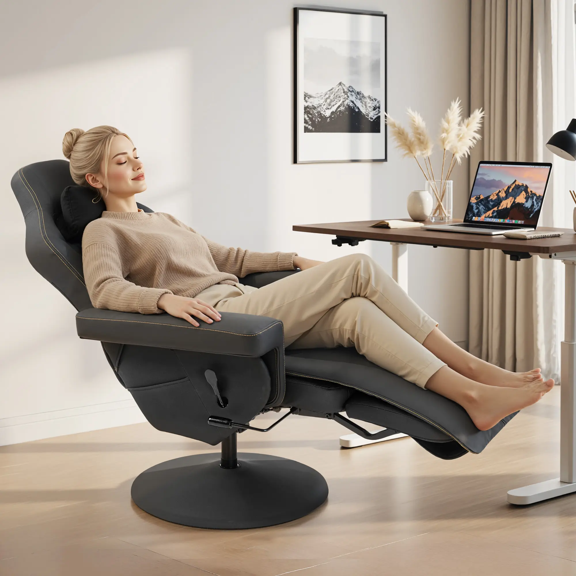 ·Shitasu Massage Lumbar Support: True comfort in a gaming recliner, This gaming recliner chair features a flat backrest with dual massage points that melts away tension from your waist and back. Unlike bulky lumbar pillows, the design allows full-body contact and natural spine support—ideal for long sessions in a reclining gaming chair.