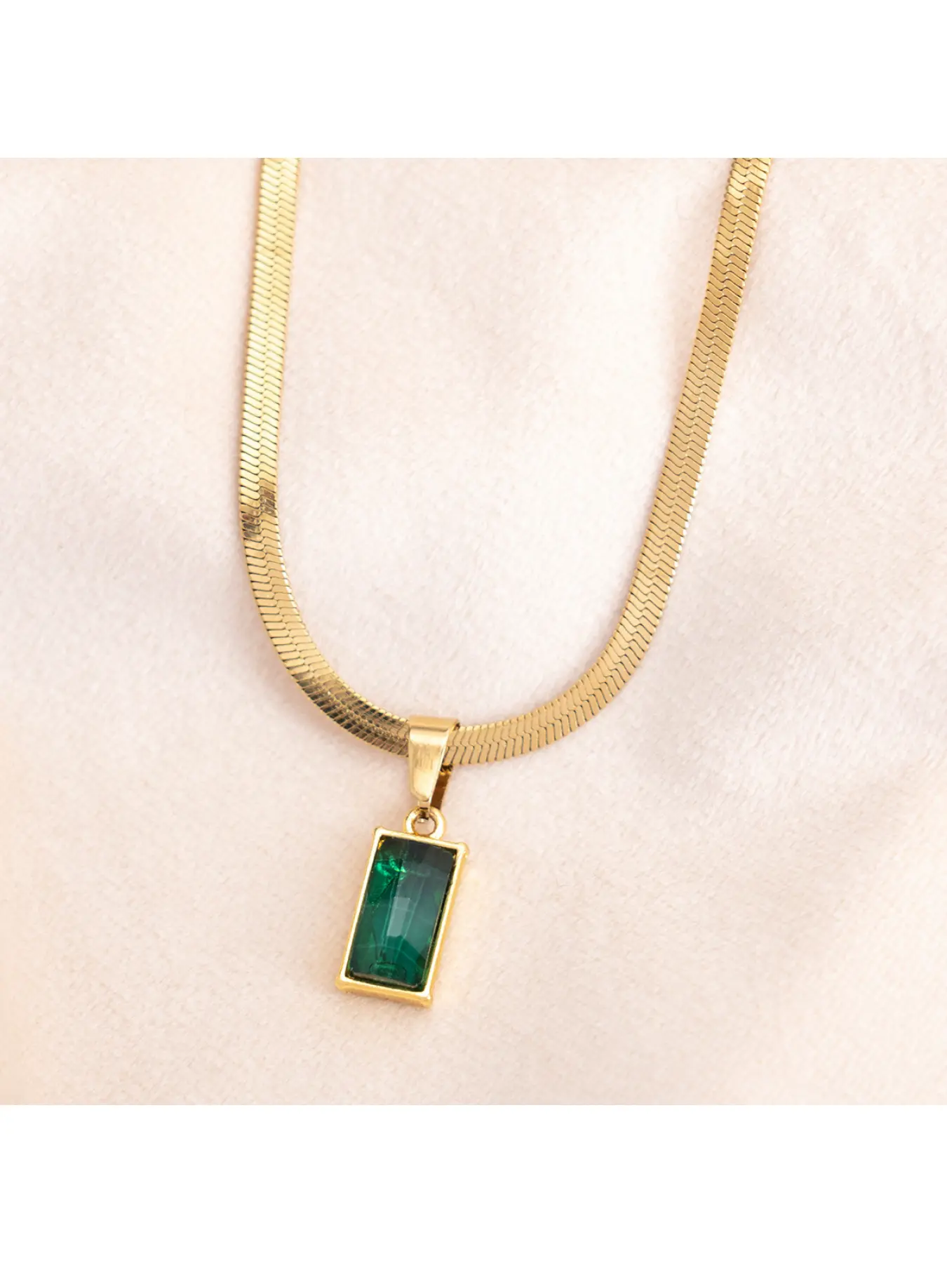 Unique Design Snake Chain Necklace Set, Geometric Luxury Emerald Stone Pendant, Elegant Jewelry Gift Idea, Perfect for Special Occasions