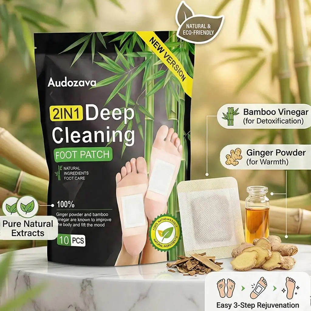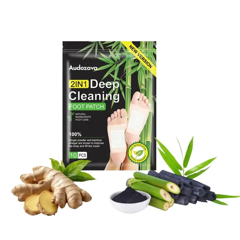 These premium herbal foot pads are infused with bamboo charcoal for deep cleansing and mood boosting. Each pack contains 10 pieces, perfect for your foot care routine. The patches are made with 100% natural ingredients, including ginger powder and bamboo vinegar. They help improve your body and lift your mood.