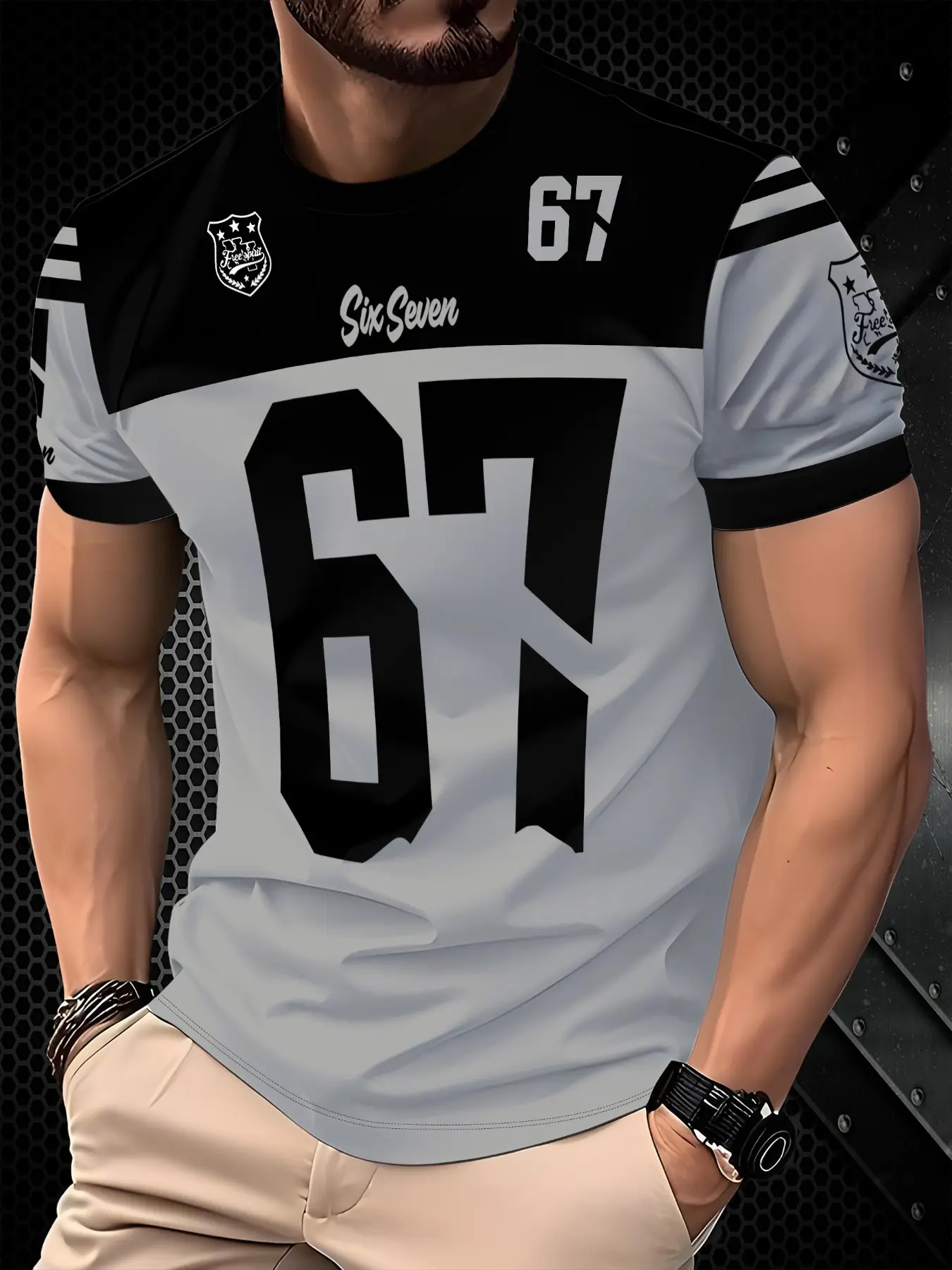 Colorblock Summer Couple Sports Baseball Jacket, Loose Oversize Drop Shoulder Short Sleeve, All over Print, Casual Street Style, Breathable Fabric