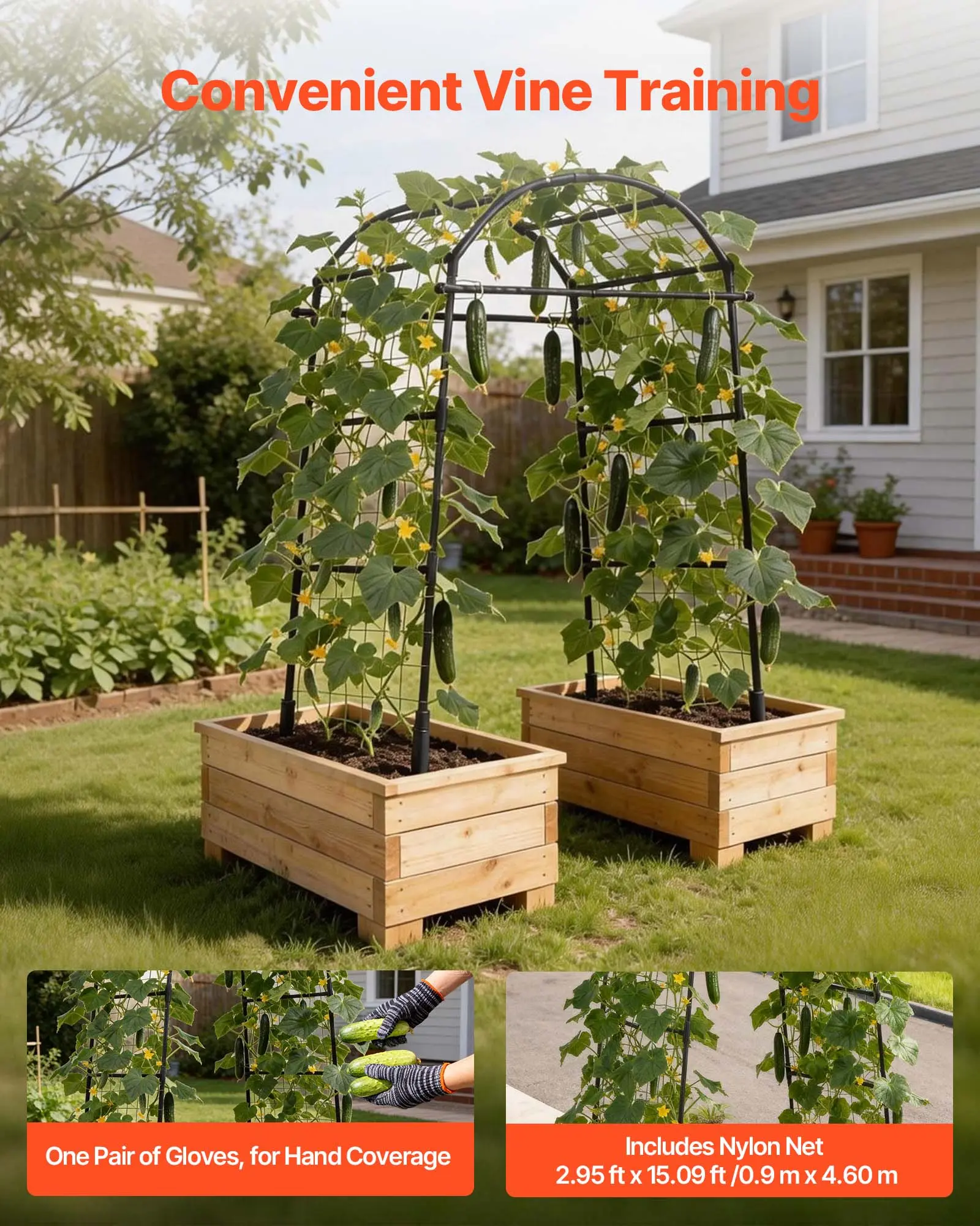 Promote Plant Growth: The vertical arch-shaped garden trellis effectively guides plants to climb upward. It provides ample space for better airflow and sunlight, promoting photosynthesis and higher yields