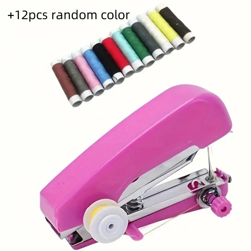 1 Set Mini Portable Handheld Sewing Machine, No Power Needed + 12pcs Polyester Thread - Dual-Purpose Quick Repair Tool for Travel and Home Use, Creative Sewing Accessories, Perfect Mother's Day Gift