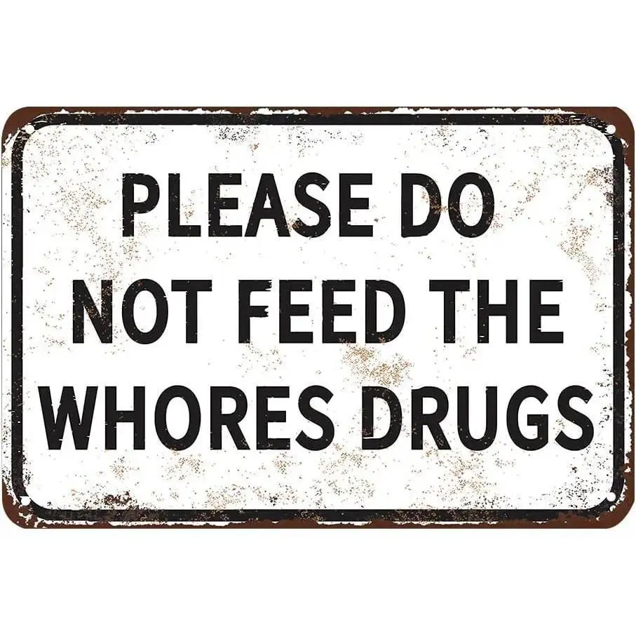 【20*30cm/8*12inch】Funny Tin Metal Sign Please Do Not Feed The Whores Drugs 12x8 Inch Gag Gift Prank Bar Pub College Dorm Decor High Quality No Fade Easy Install Signage Decoration