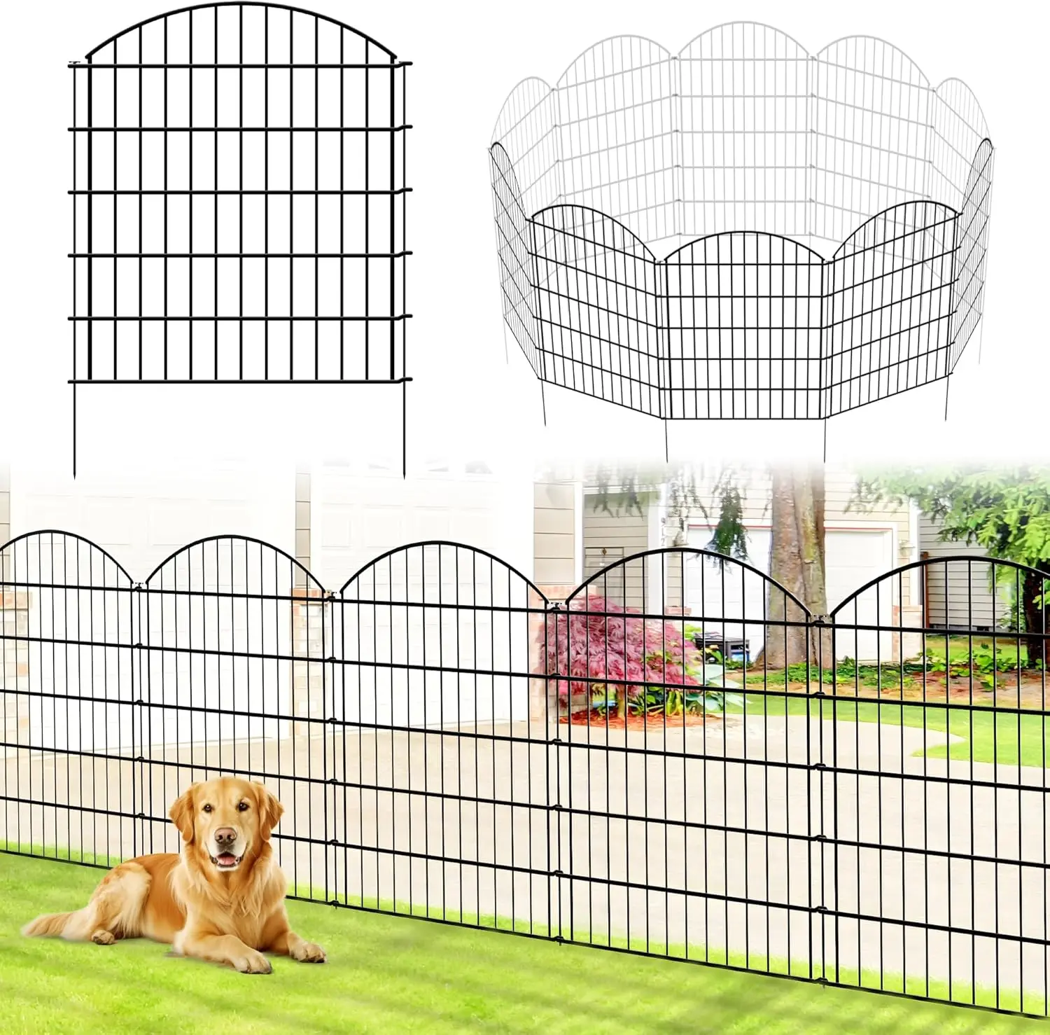 ·【Wide Range of Uses】Whether it's used to protect your garden or as a practical barrier at the border of your yard, this iron fence does the job perfectly. It can be used not only as a decorative fence, flowerbed fence, but also as a dog fence or animal fence to safely and securely prevent animals from breaking into your garden or yard. It effectively divides yard space, defines private territories and skillfully avoids the intrusion of small animals.