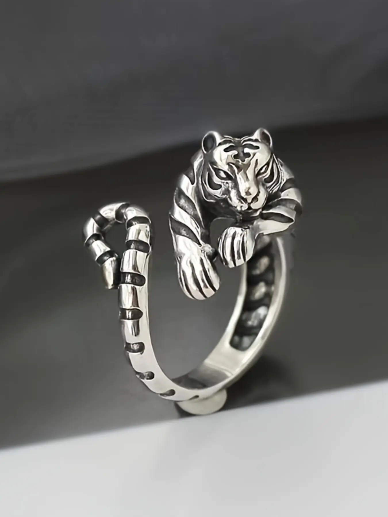 Vintage Tiger Ring, 3D Relief Open Ring, Zodiac Tiger Ring, Unisex, Daily Wear, Zodiac Memorial, Unique Fashion Jewelry