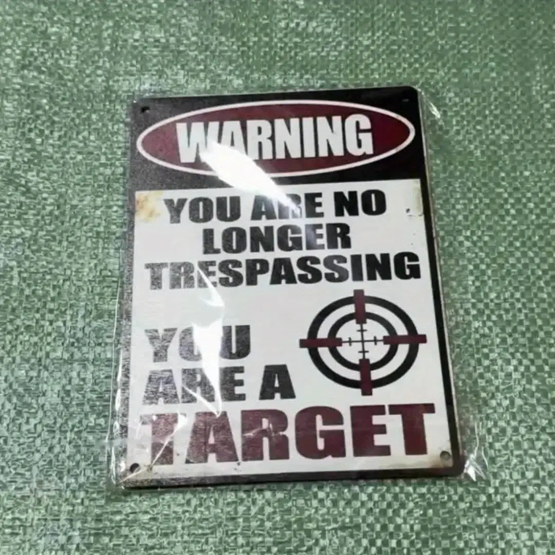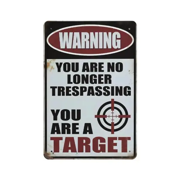 No Trespassing Sign Funny Warning Sign: This heavy-duty iron sign features a retro design with "No Trespassing" text and bullet hole accent. Perfect for man cave, garage, bar, or outdoor use.