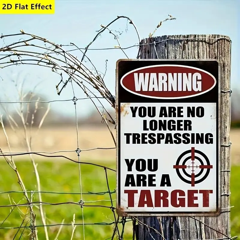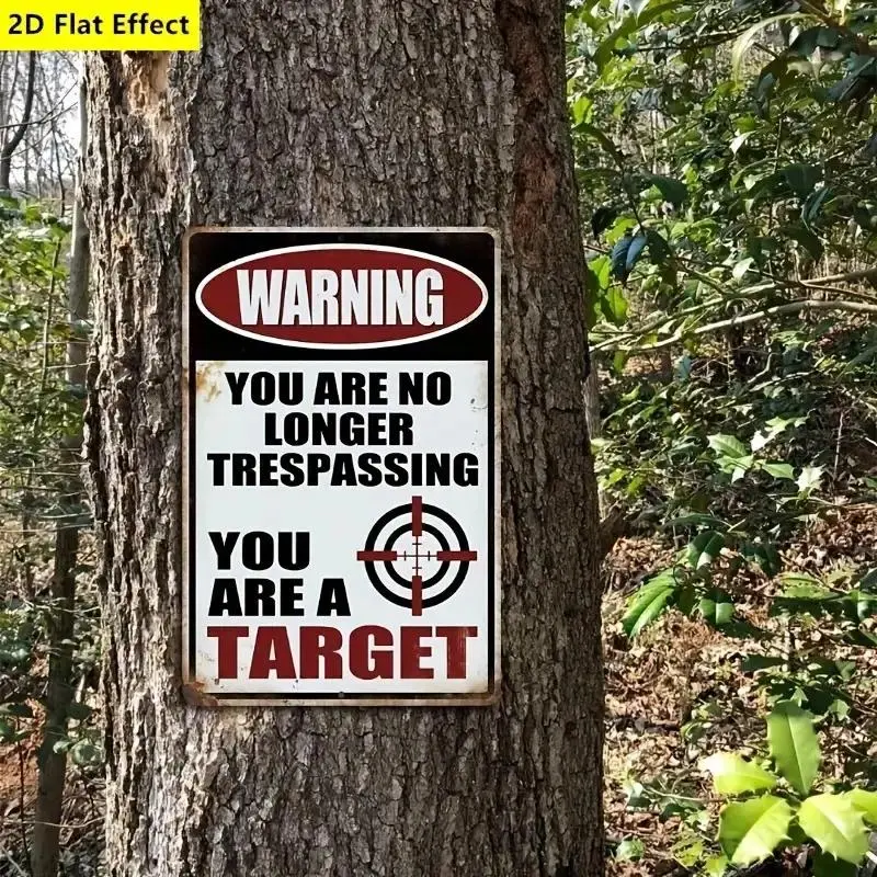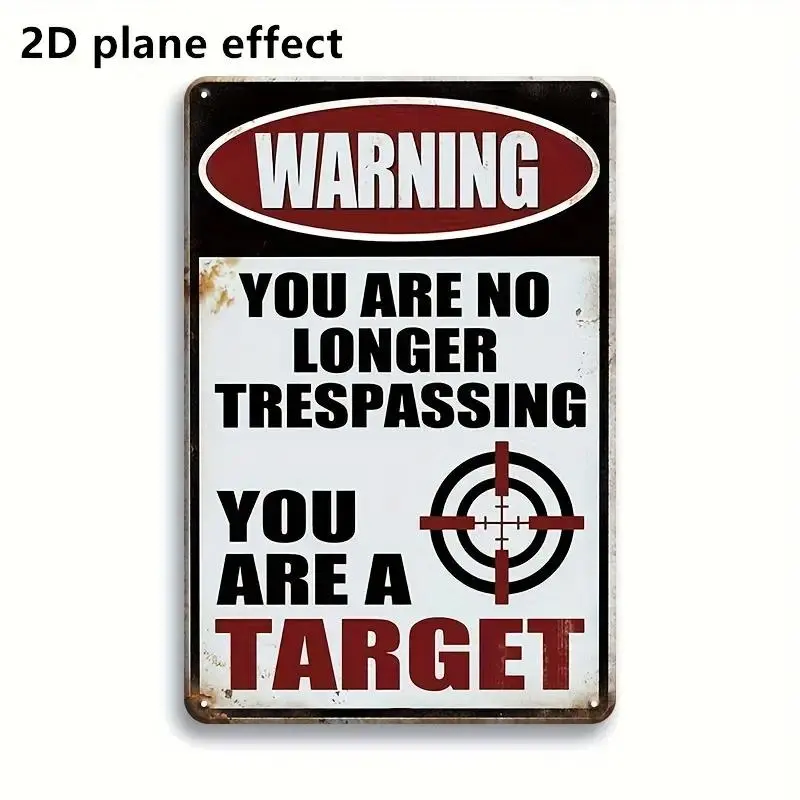 【20*30cm/8*12inch】Funny 'No Trespassing' Warning Sign - Heavy-Duty Iron Retro Design with Trespasser Text & Bullet Hole Accent - 20cm"x30cm" Wall-Mounted Plaque for Man Cave Garage Bar or Outdoo
