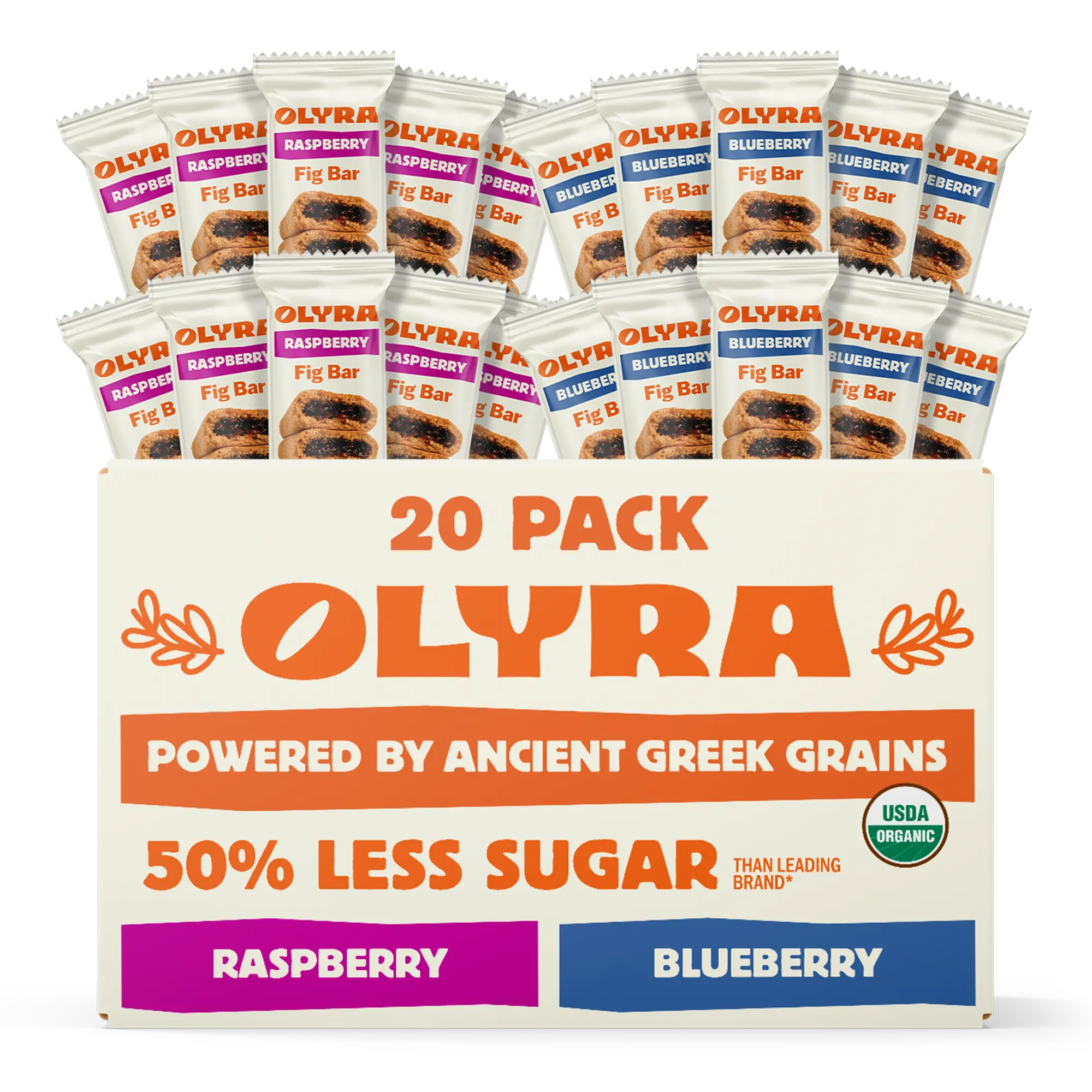 Olyra Fig Bars Bundle - 4 Box Case - 20 Bars, Organic Fig Bars with Real Fruit, Low sugar, Vegan Snacks