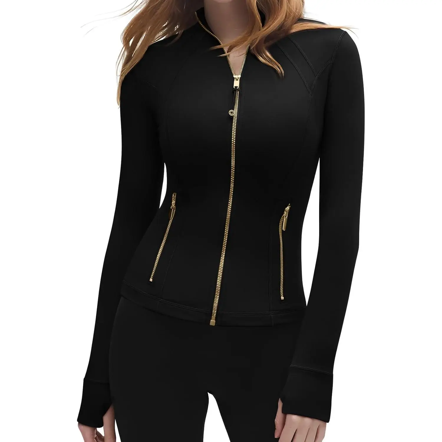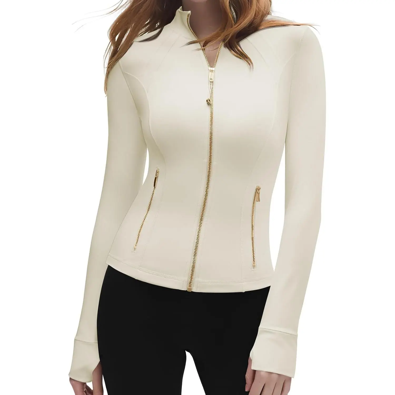 Women Golden Full Zip Up Workout Cropped Jackets Lightweight Athletic Yoga Tops