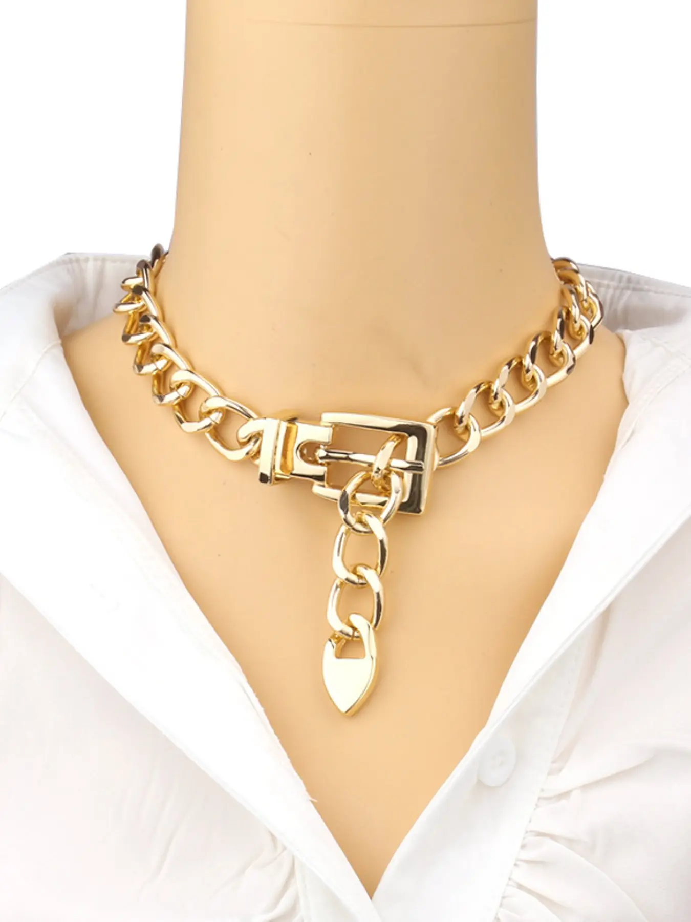 【Punk Aesthetic】: Embrace edgy fashion with this punk-inspired alloy buckle chain necklace, perfect for statement looks.