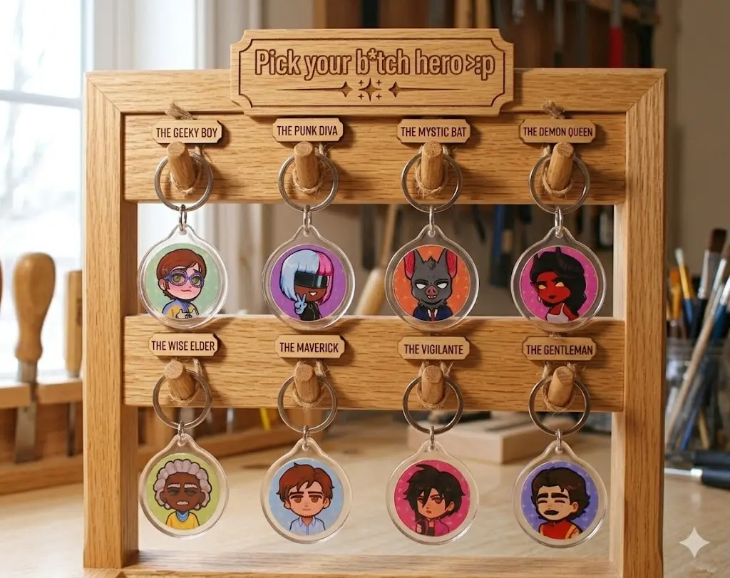 Available in 3 sizes (2x2, 3x3, 3.5x3.5), made from durable acrylic with a sturdy keyring to keep your keys secure and organized. Small yet eye-catching — perfect for everyday use or as a thoughtful gift