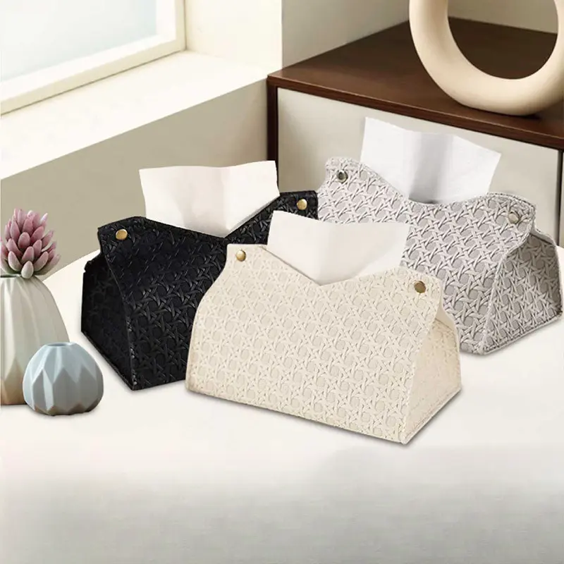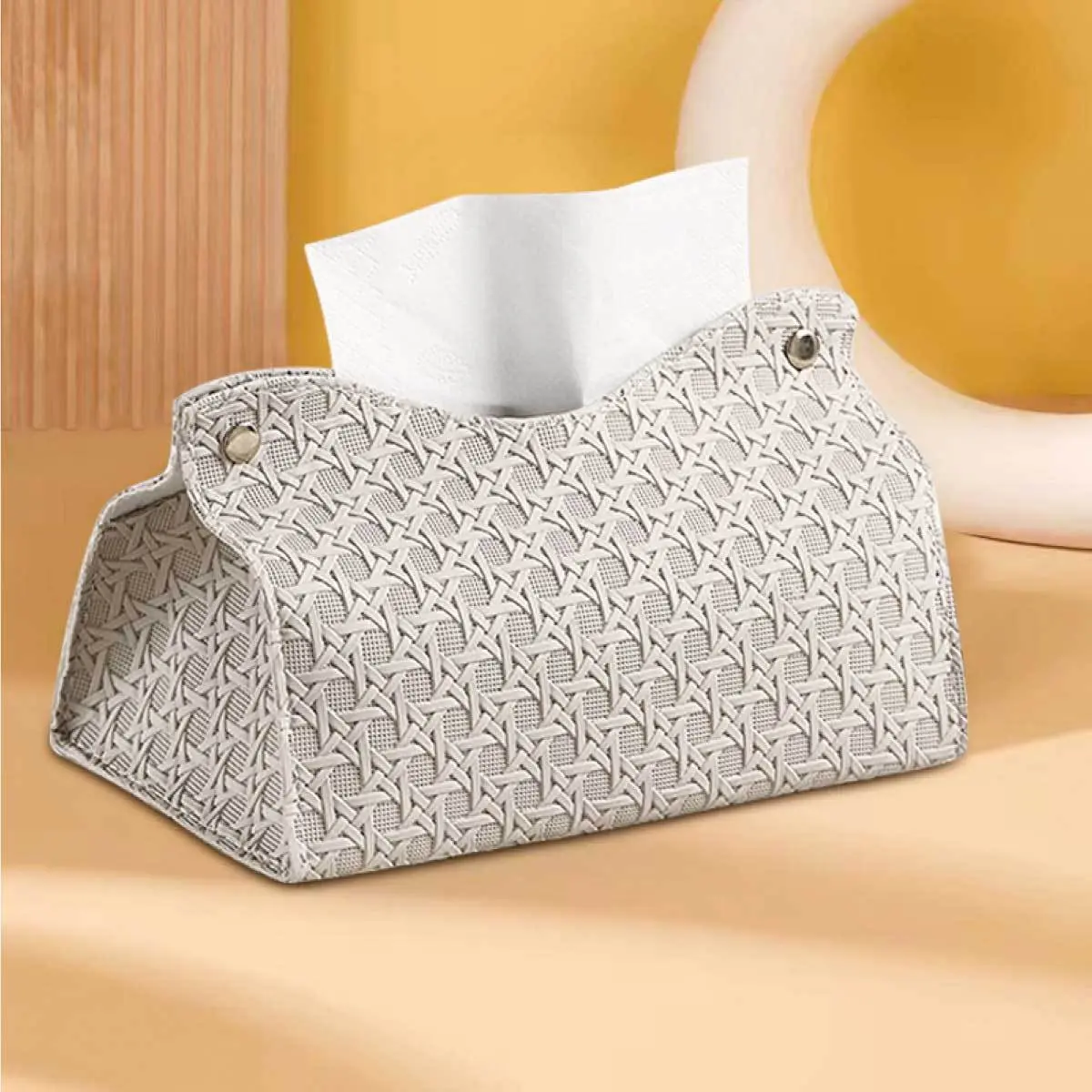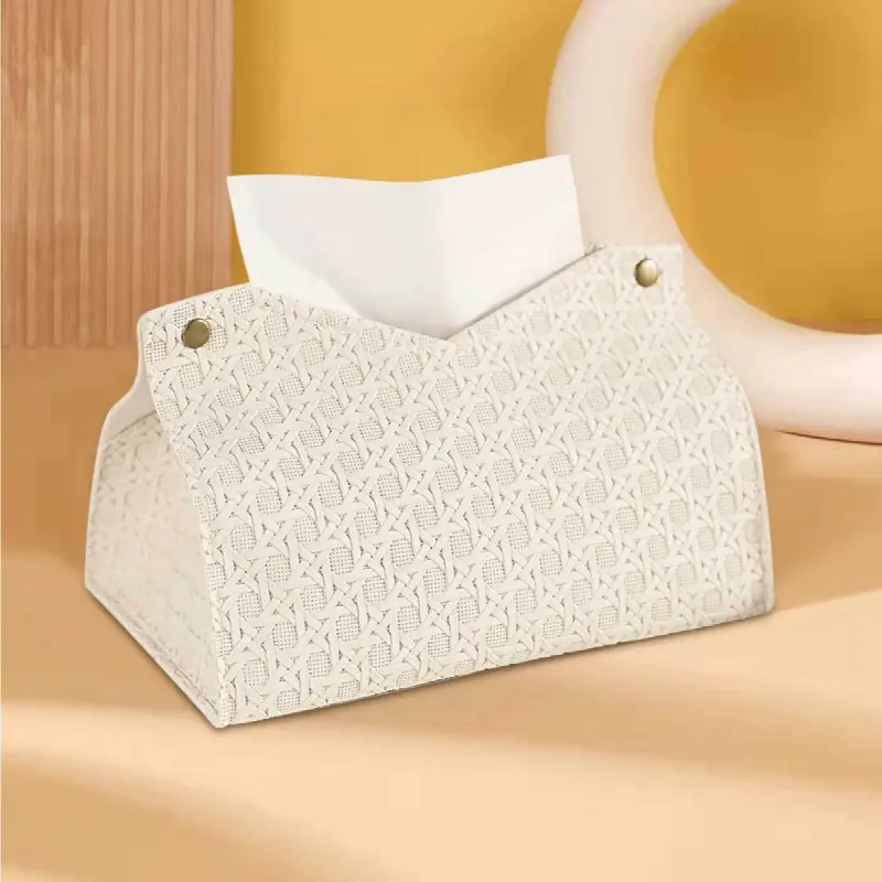 Elegant tissue box cover featuring a delicate rattan pattern and soft faux leather, blending light luxury texture with modern simplicity for your home and office.